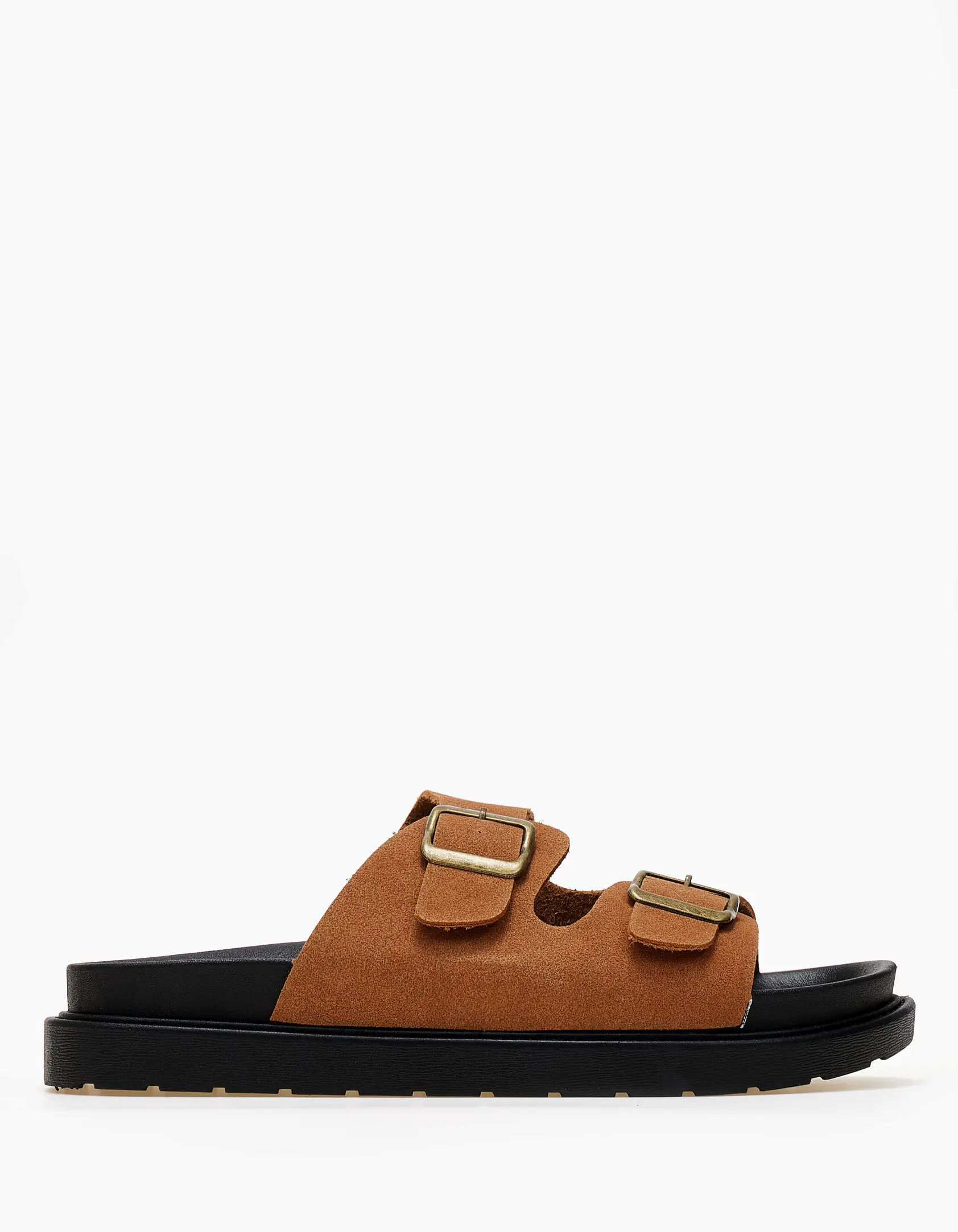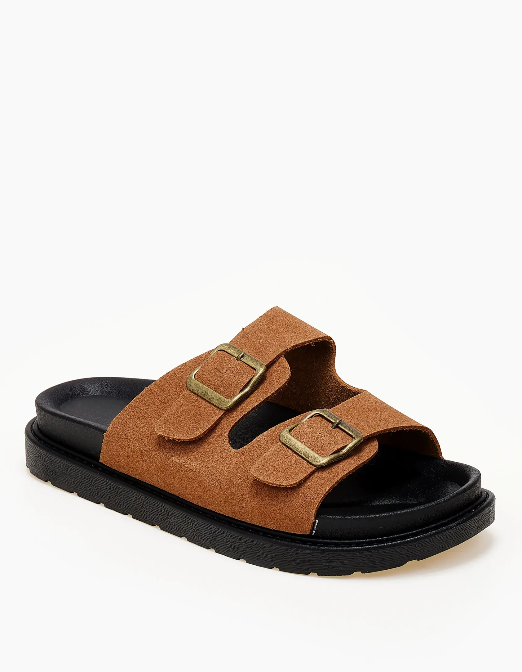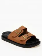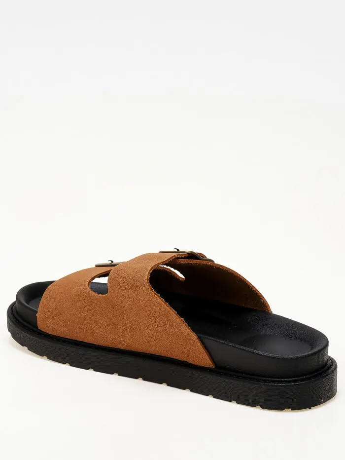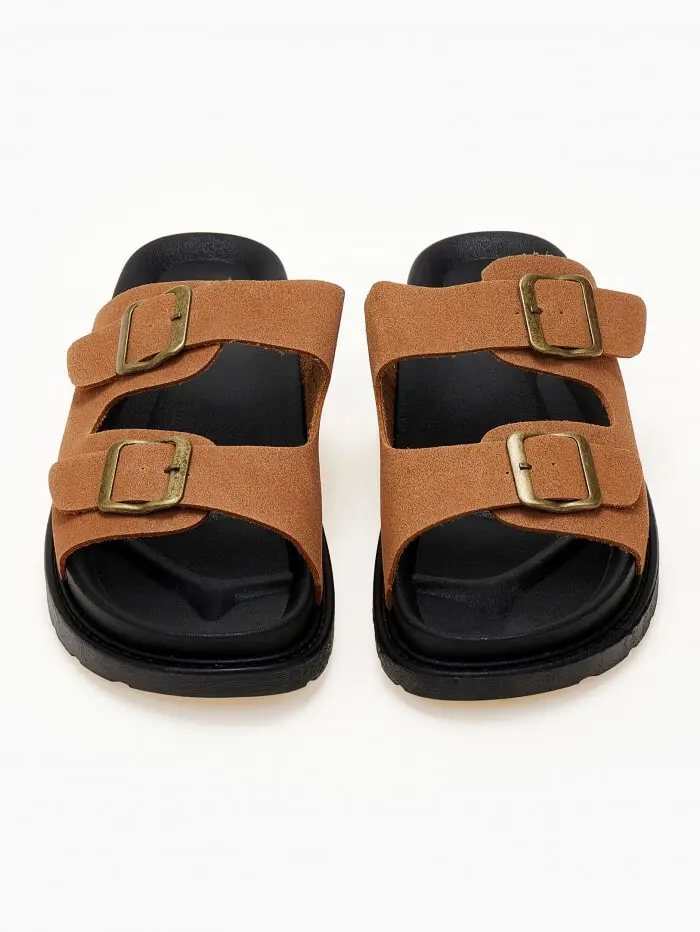 Δερμάτινα suede σανδάλια με ρυθμιζόμενα ζωνάκια - Κάμελ