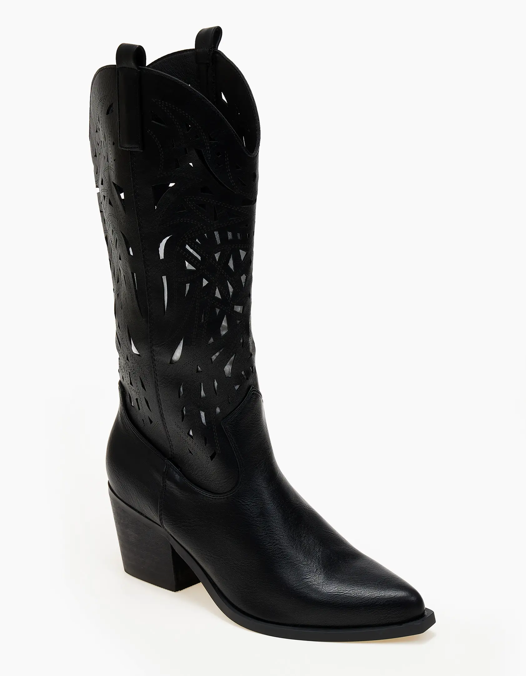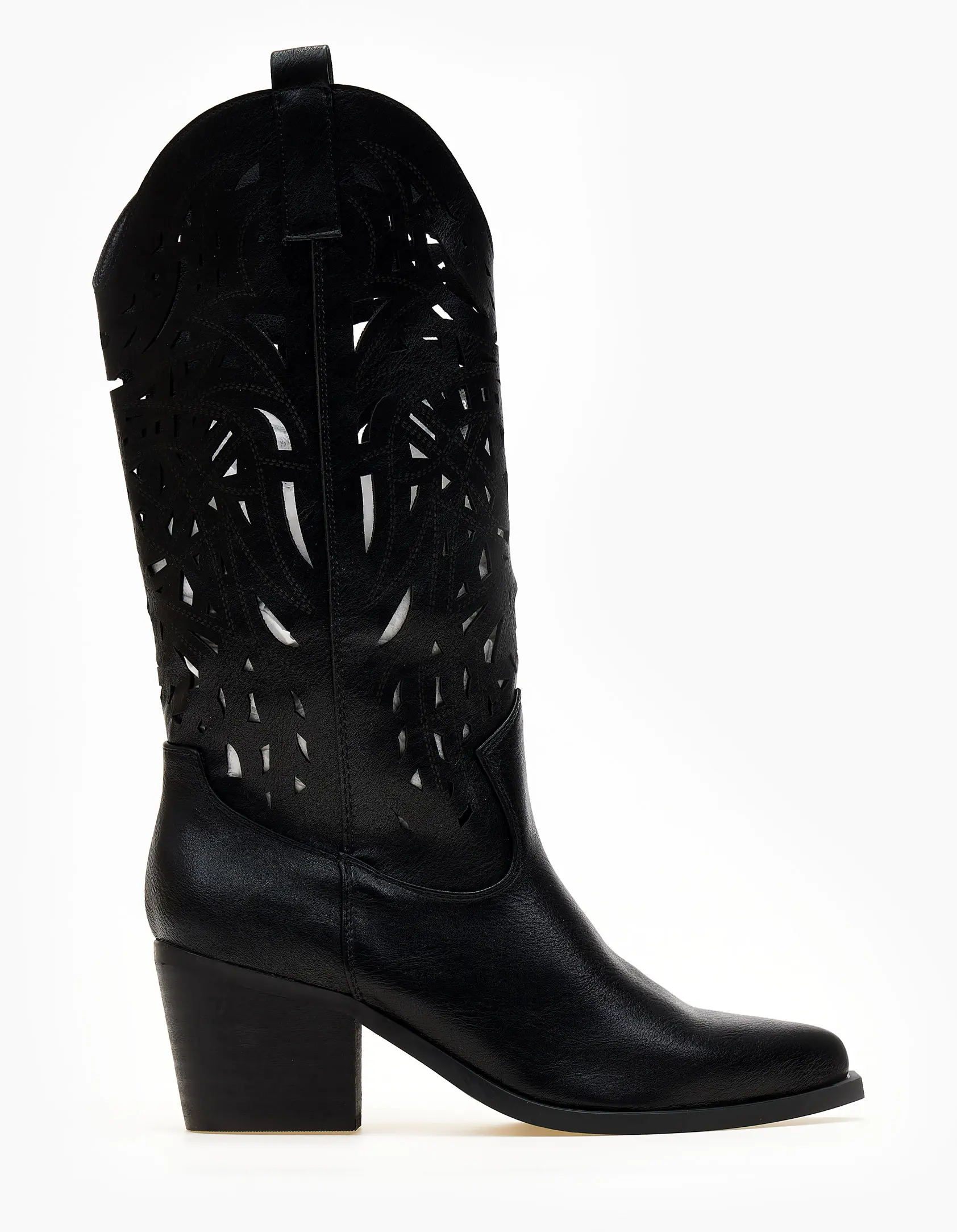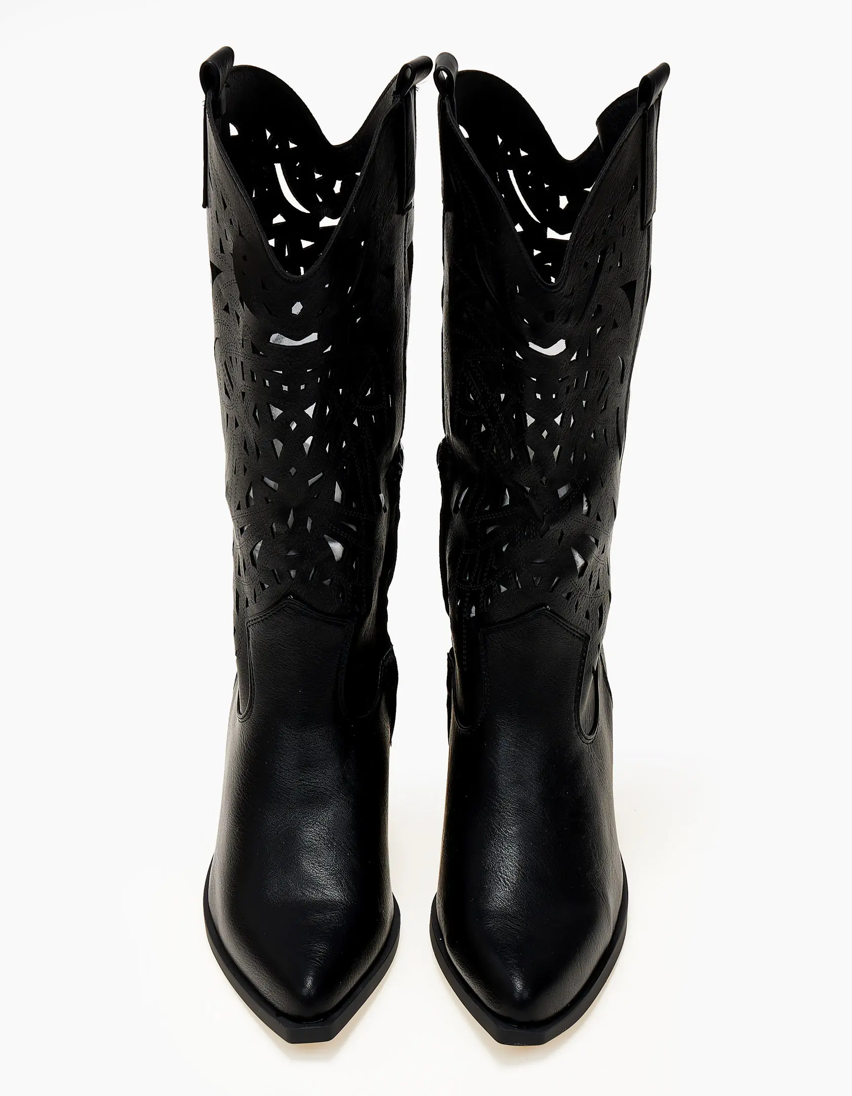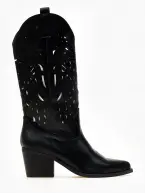 Μπότες cowboy με laser cut σχέδιο - Μαύρο
