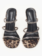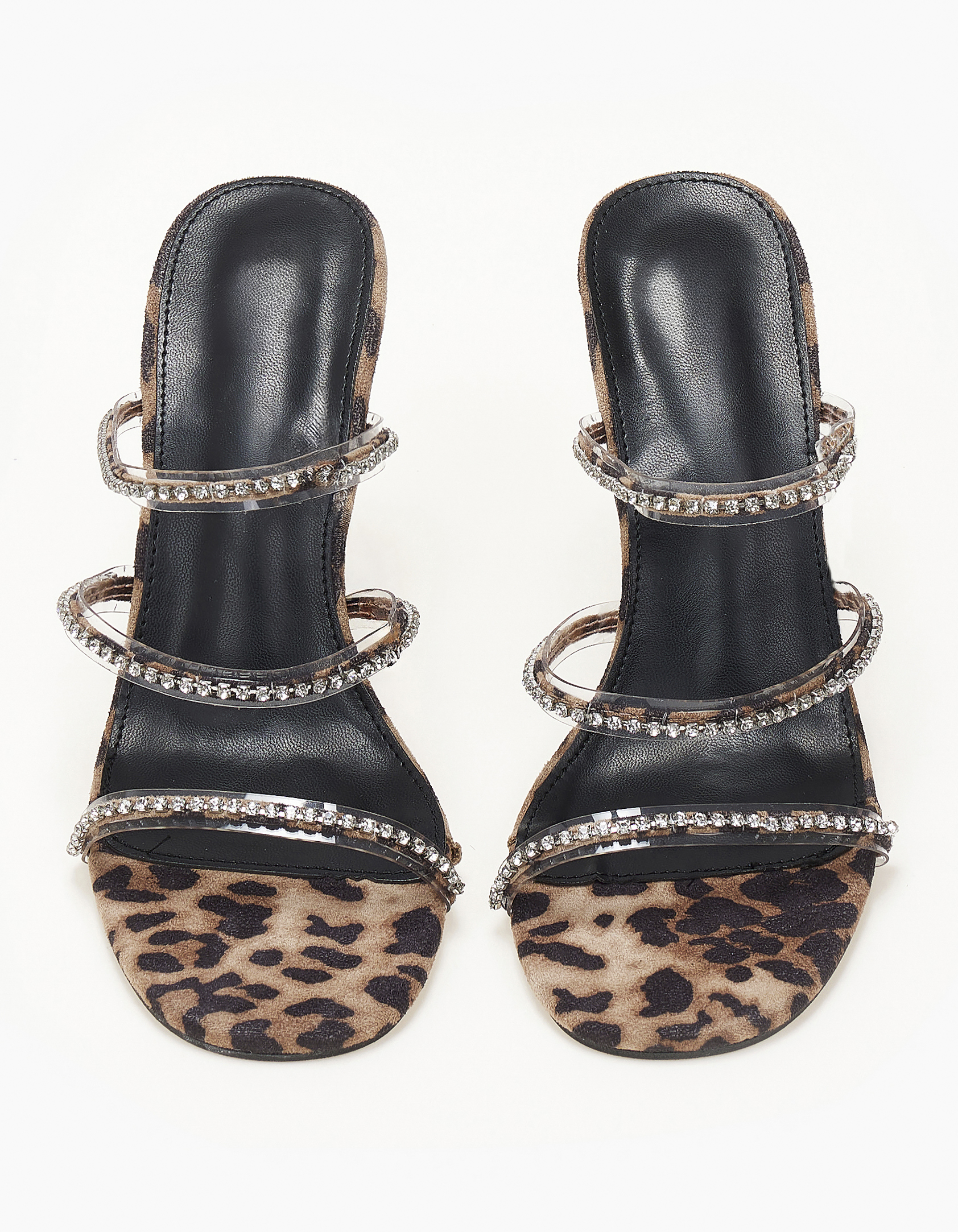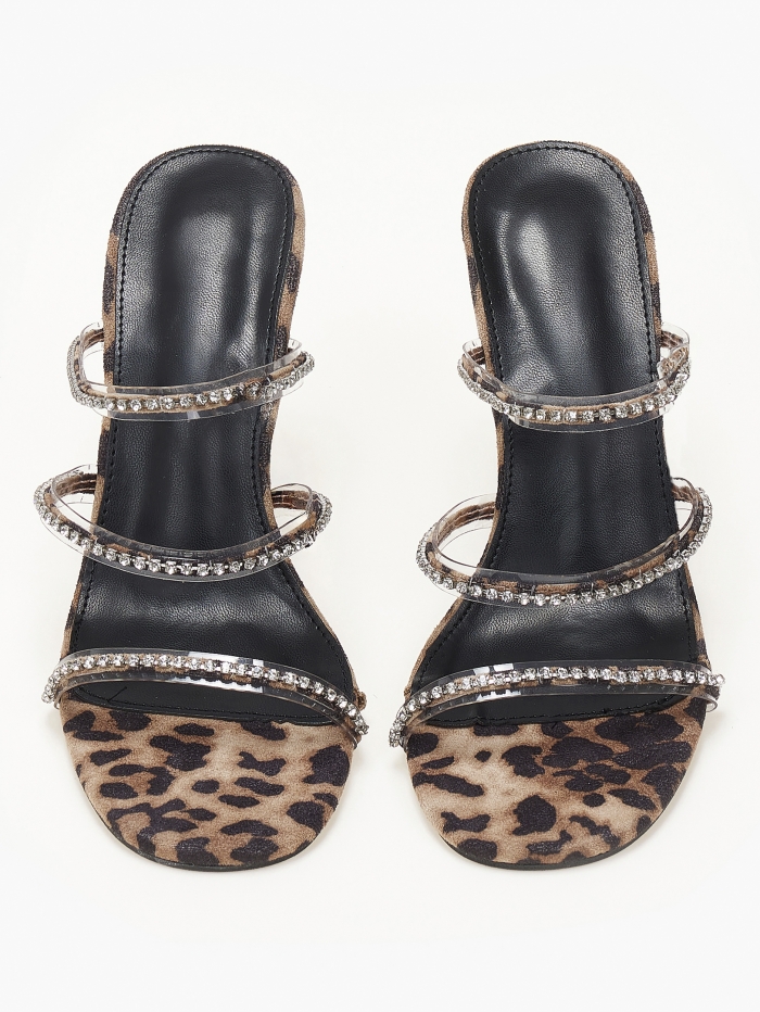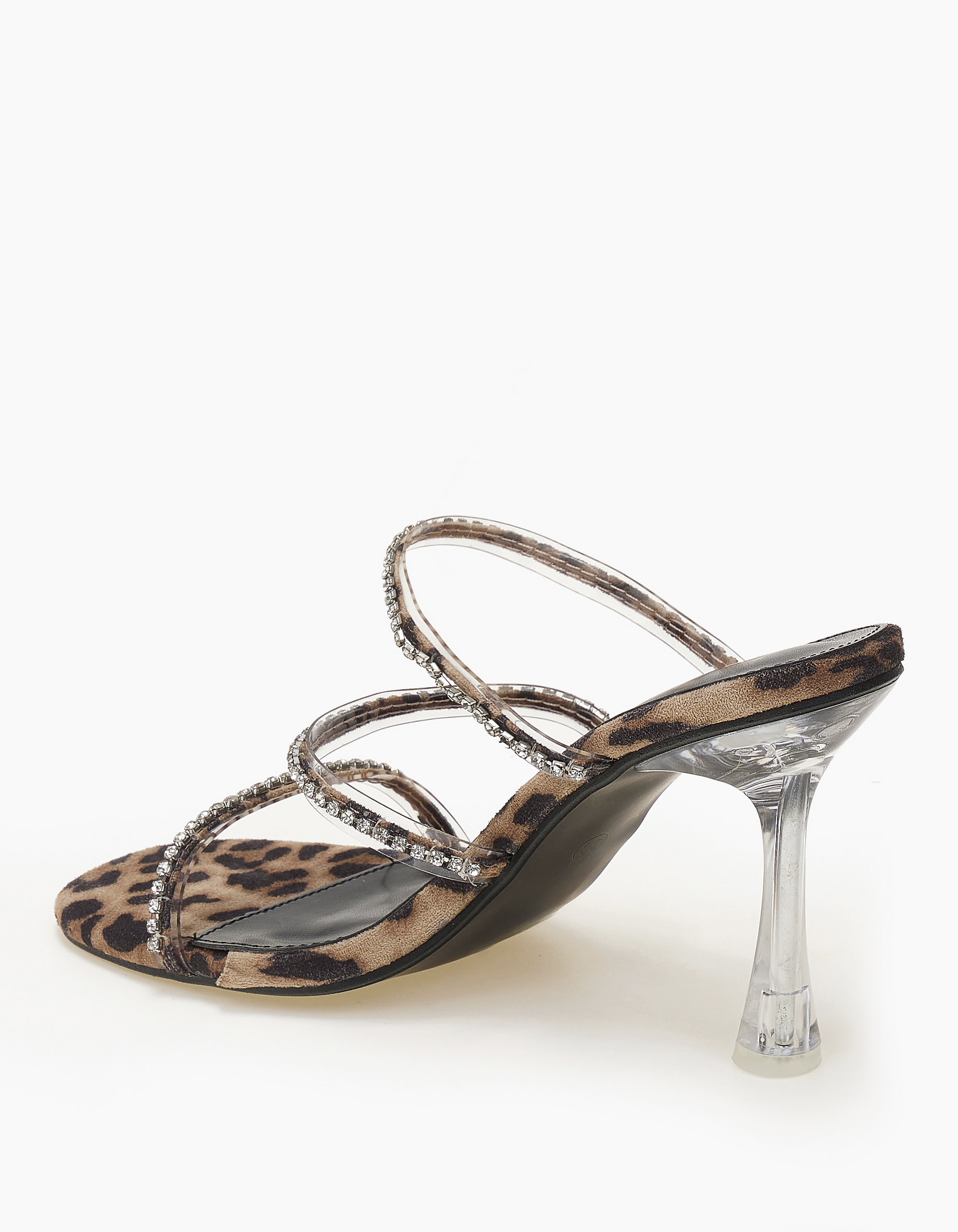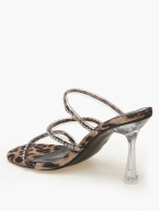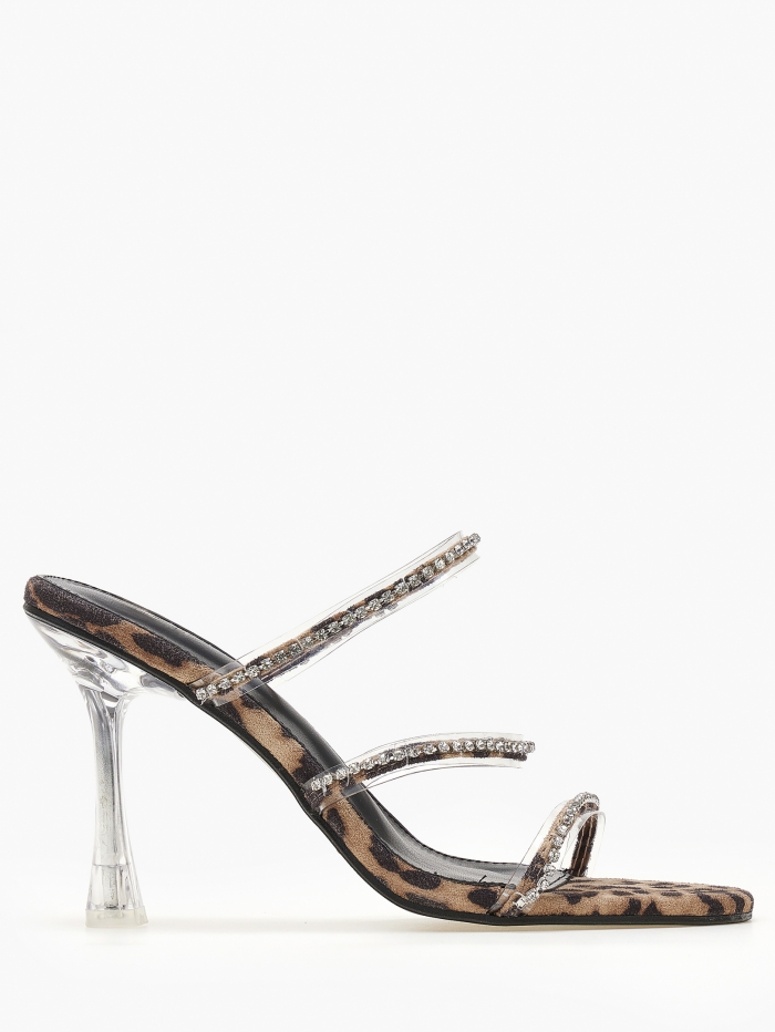 Ψηλά mules με διάφανο τακούνι και στρας - Λεοπάρ