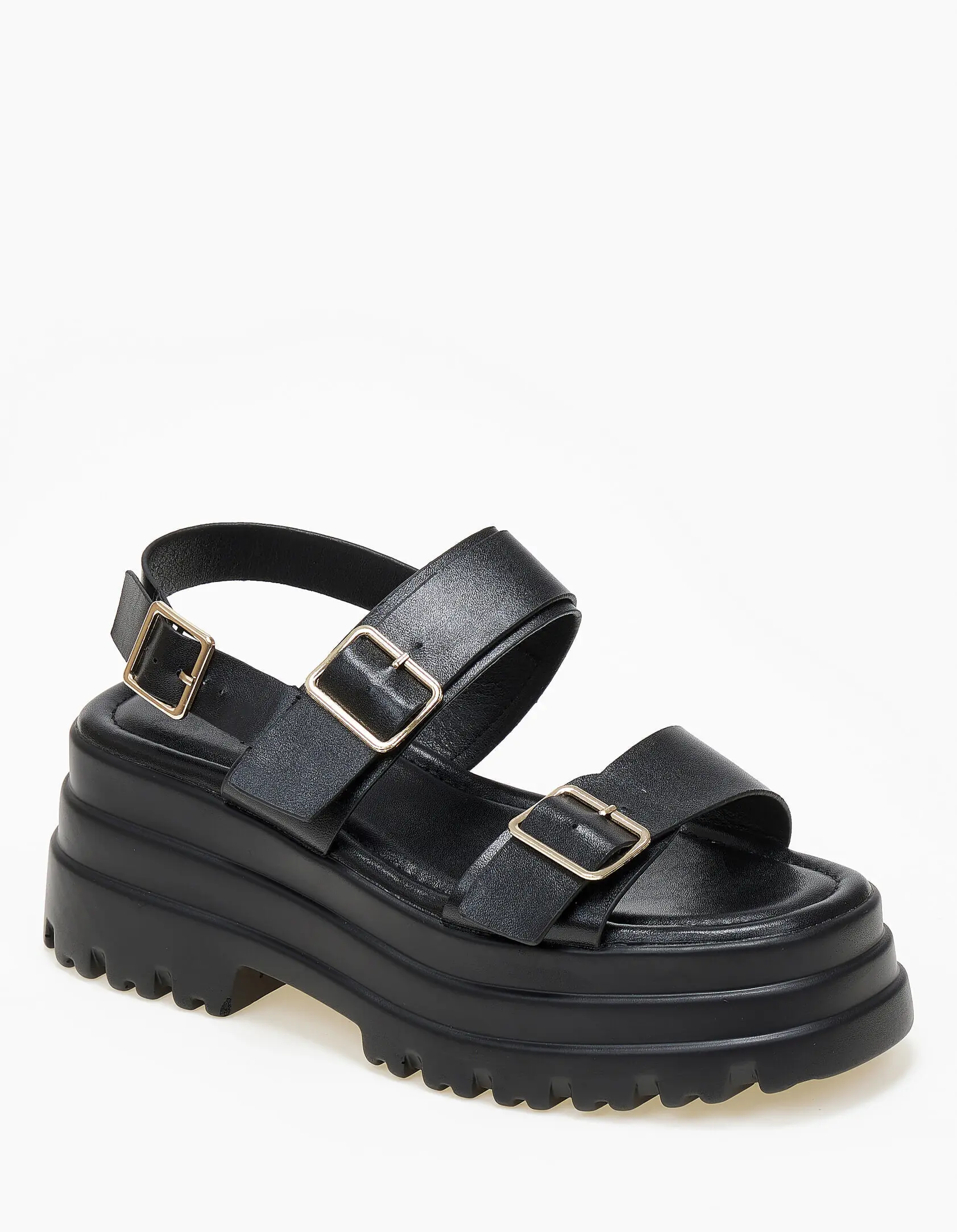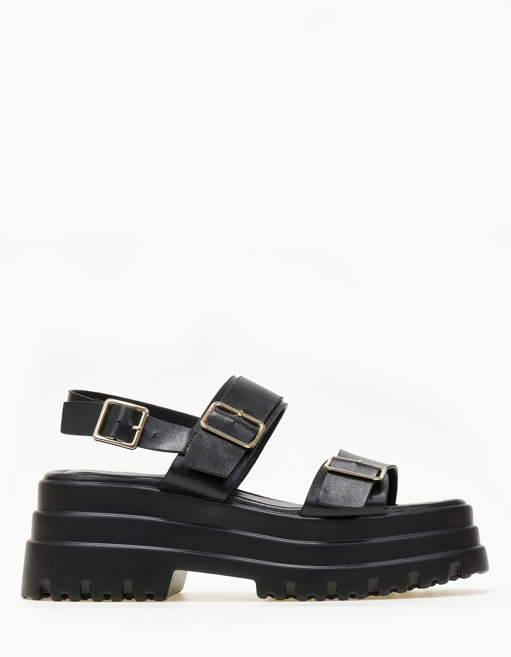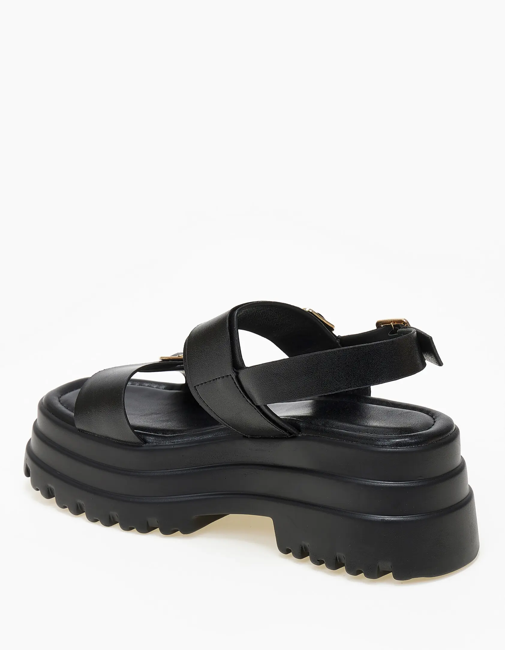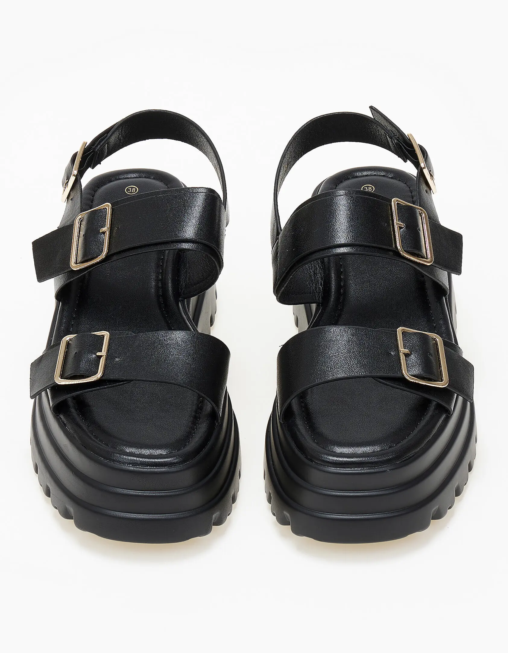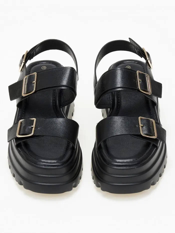 Ψηλά σανδάλια flatform με chunky σόλα - Μαύρο