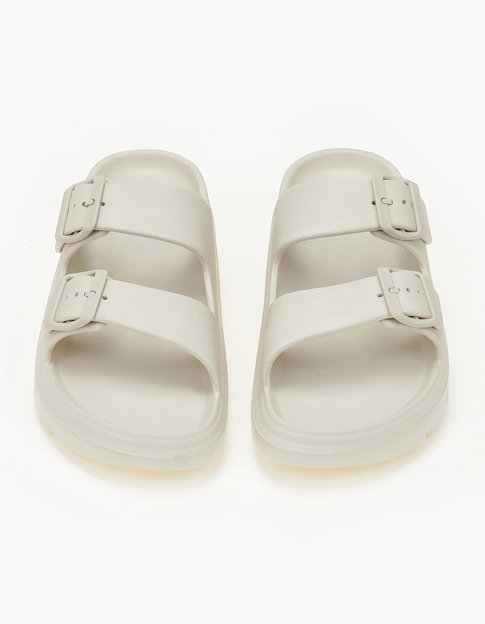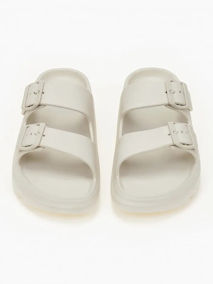 Γυναικείες δίσολες σαγιονάρες με δύο τοκάδες - Μπεζ