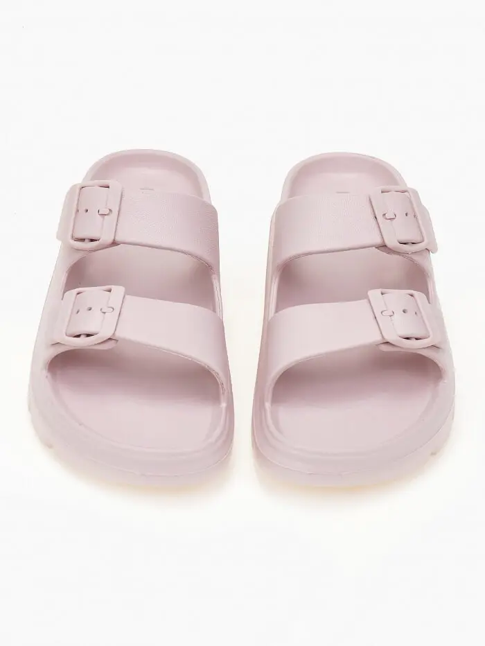 Γυναικείες δίσολες σαγιονάρες με δύο τοκάδες - Ροζ