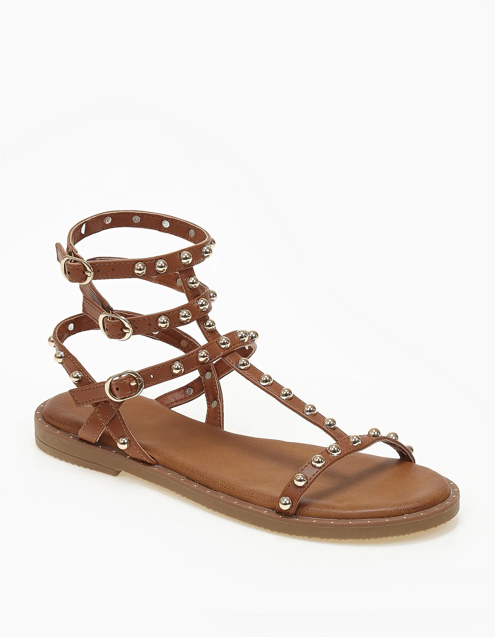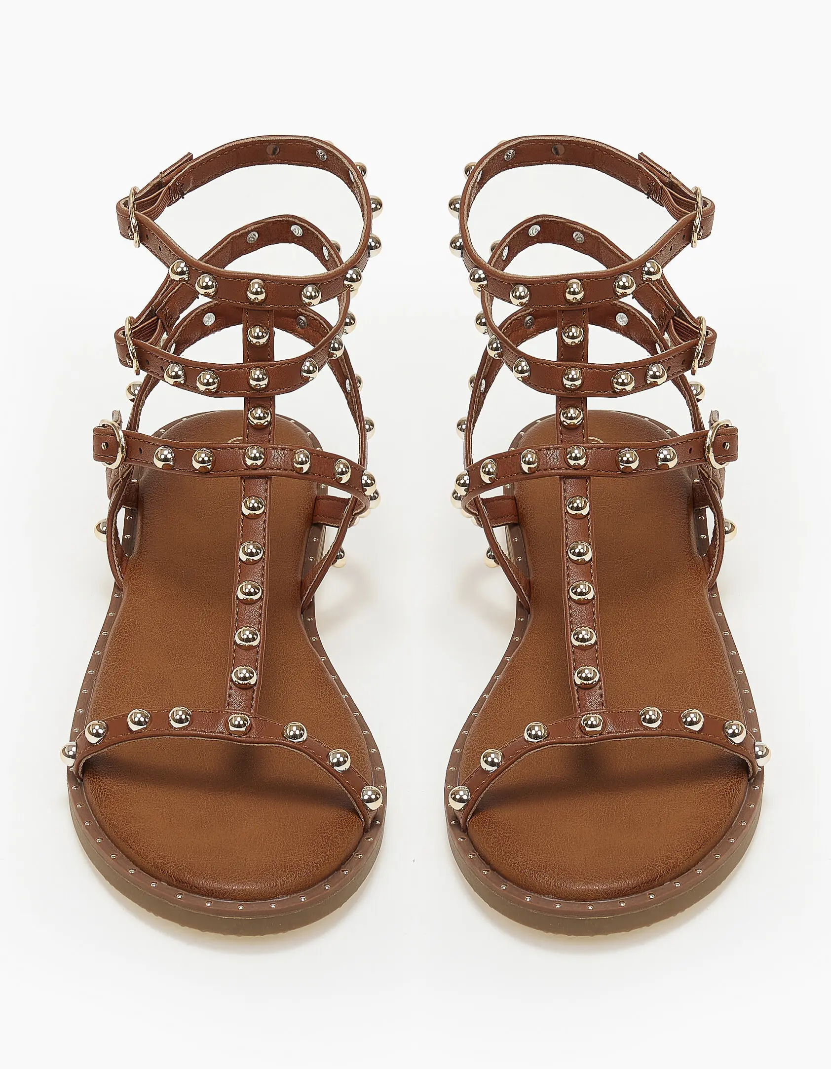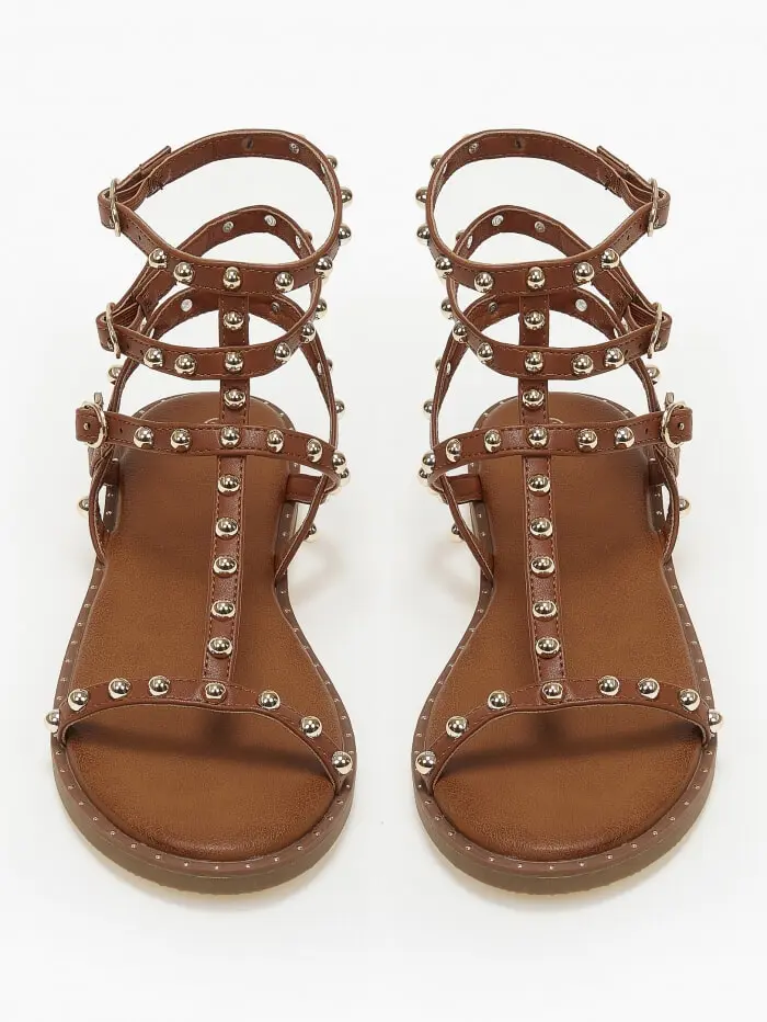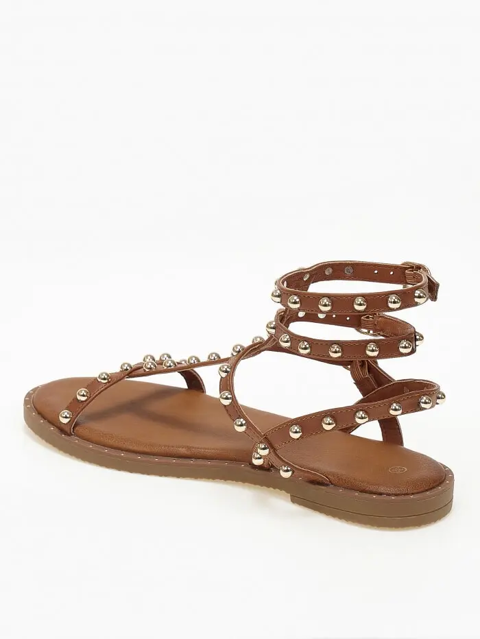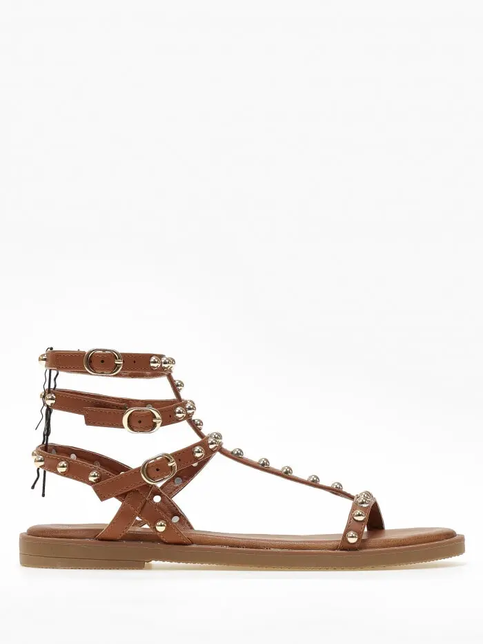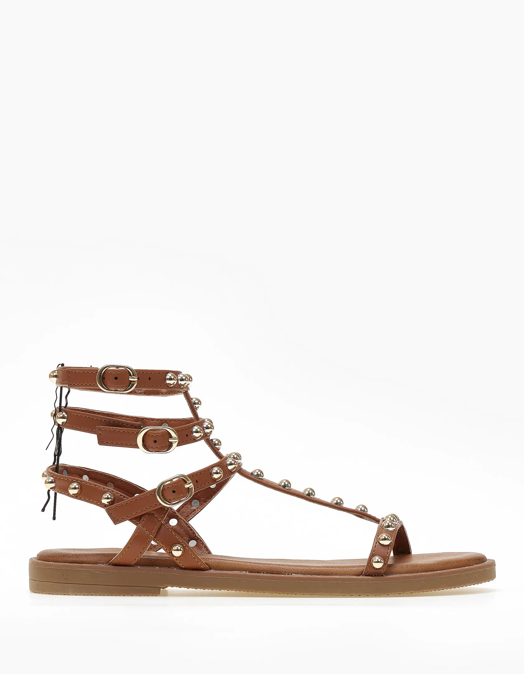 Flat σανδάλια με λεπτομέρεια τρουκς - Κάμελ
