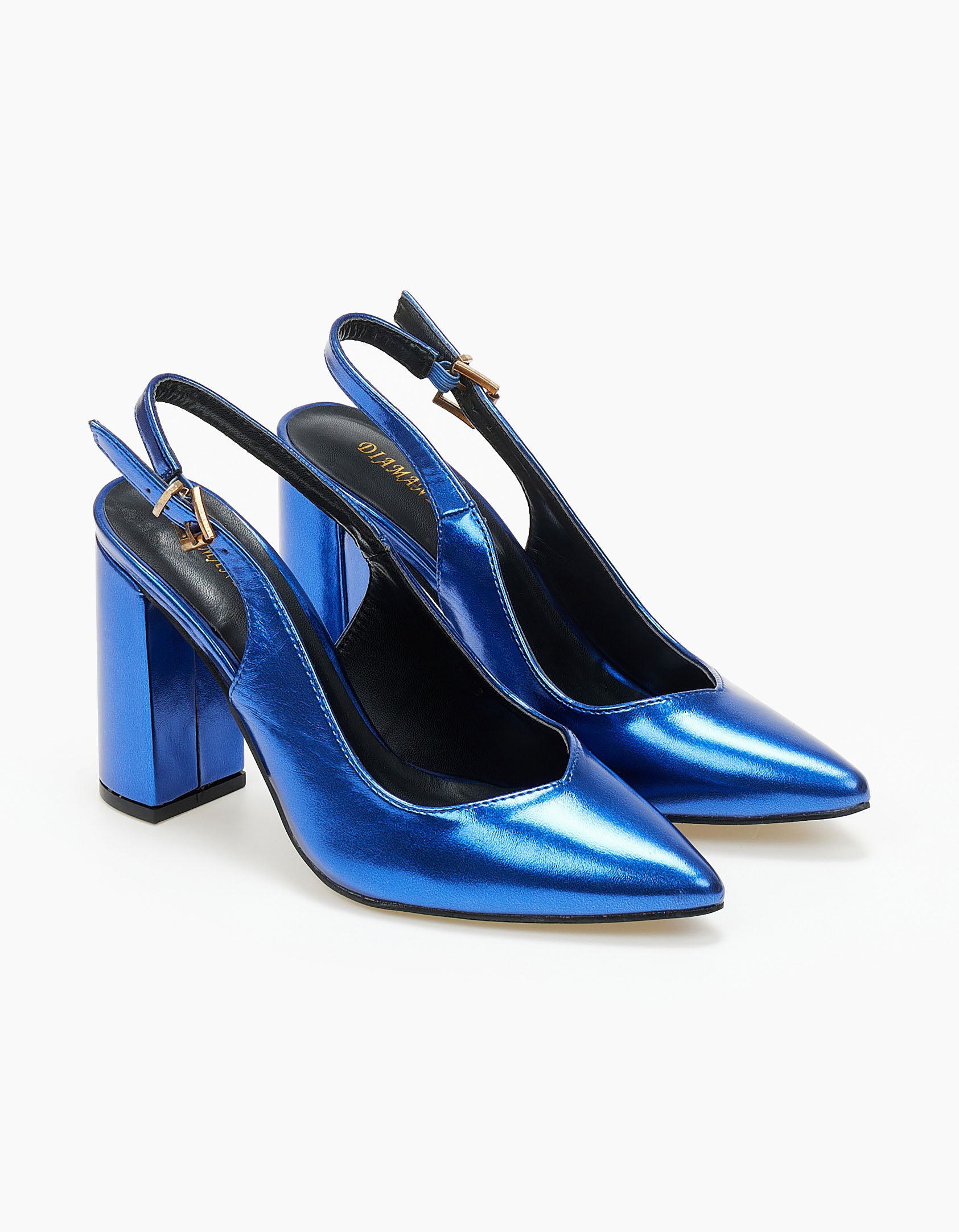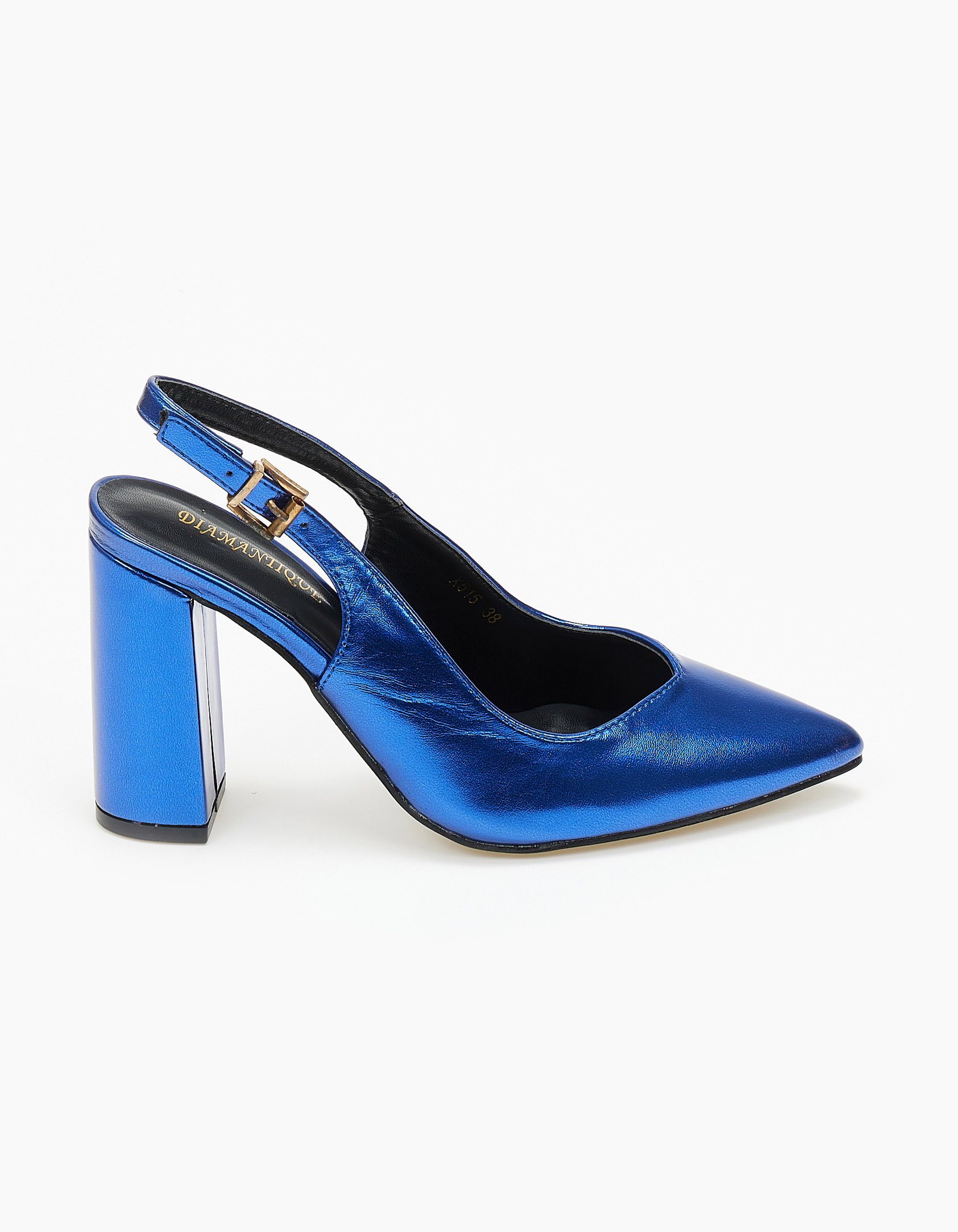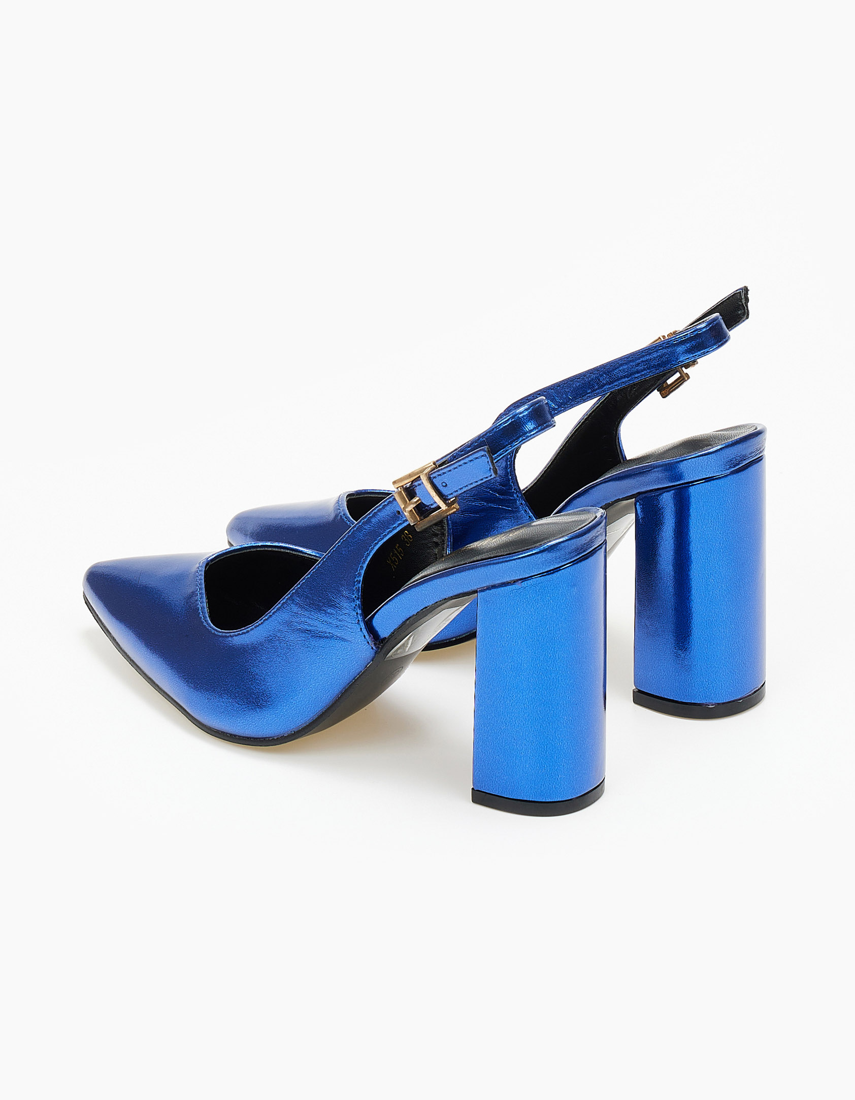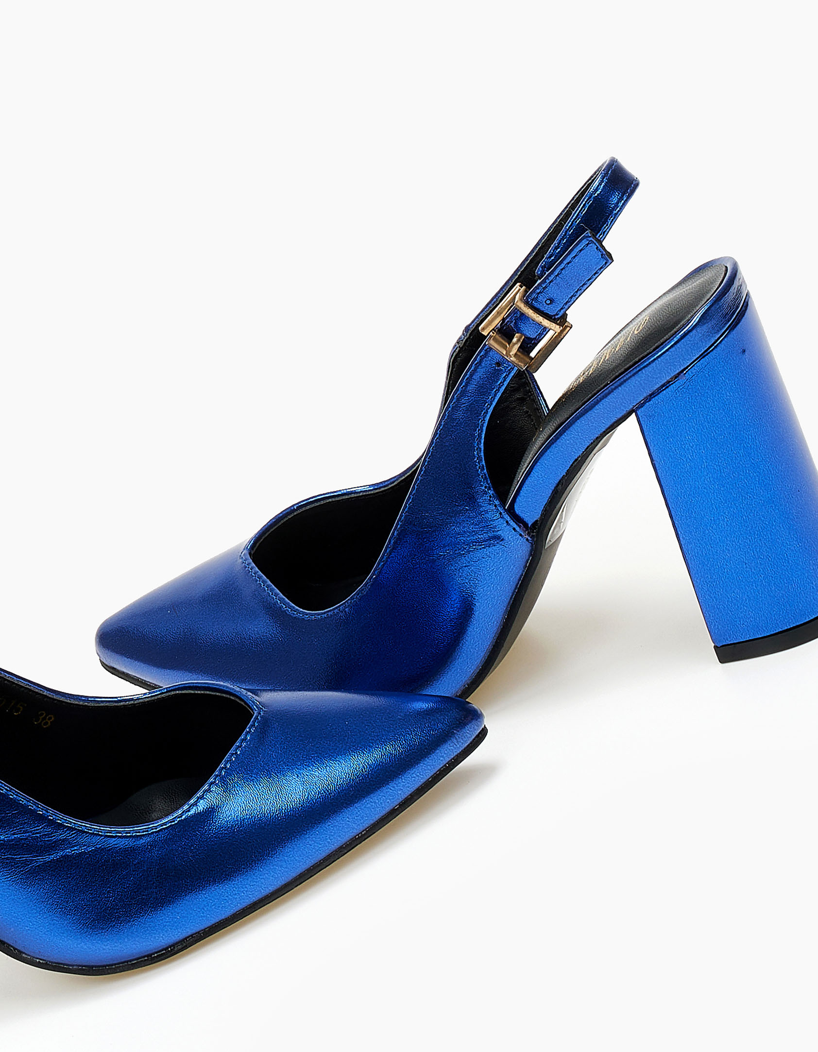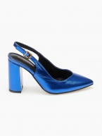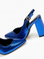 Γόβες εξώφτερνες με V κόψιμο και χοντρό τακούνι - Μπλε Ρουά