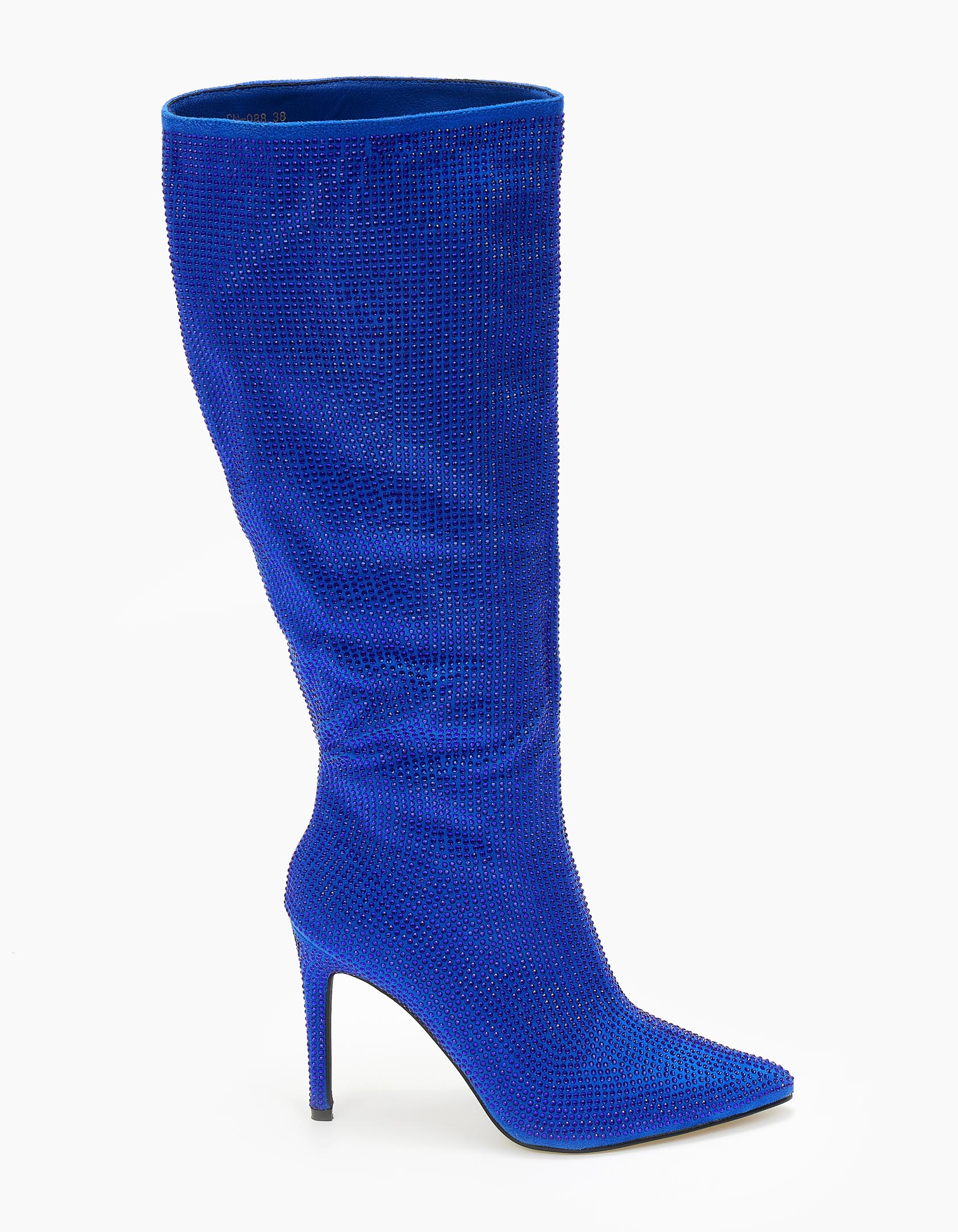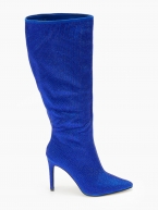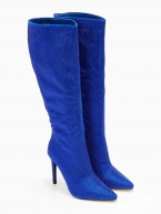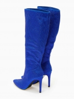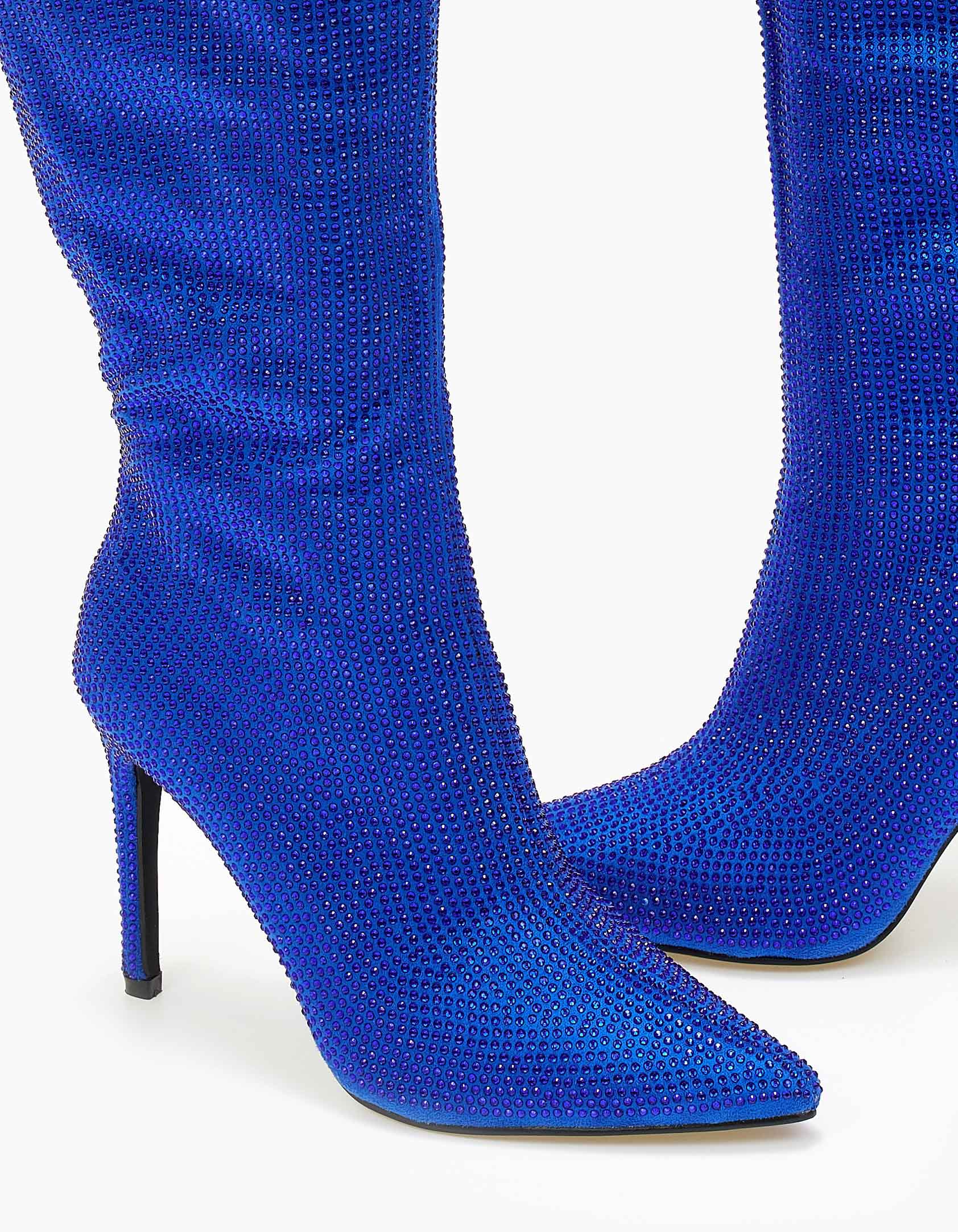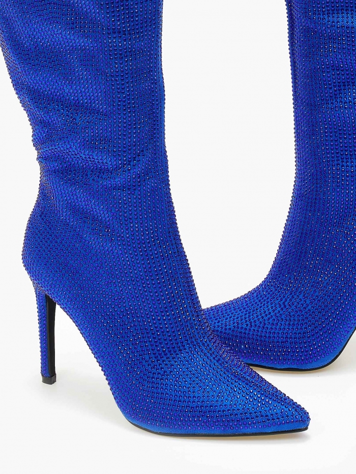 Μυτερές μπότες με στρας και λεπτό τακούνι - Μπλε