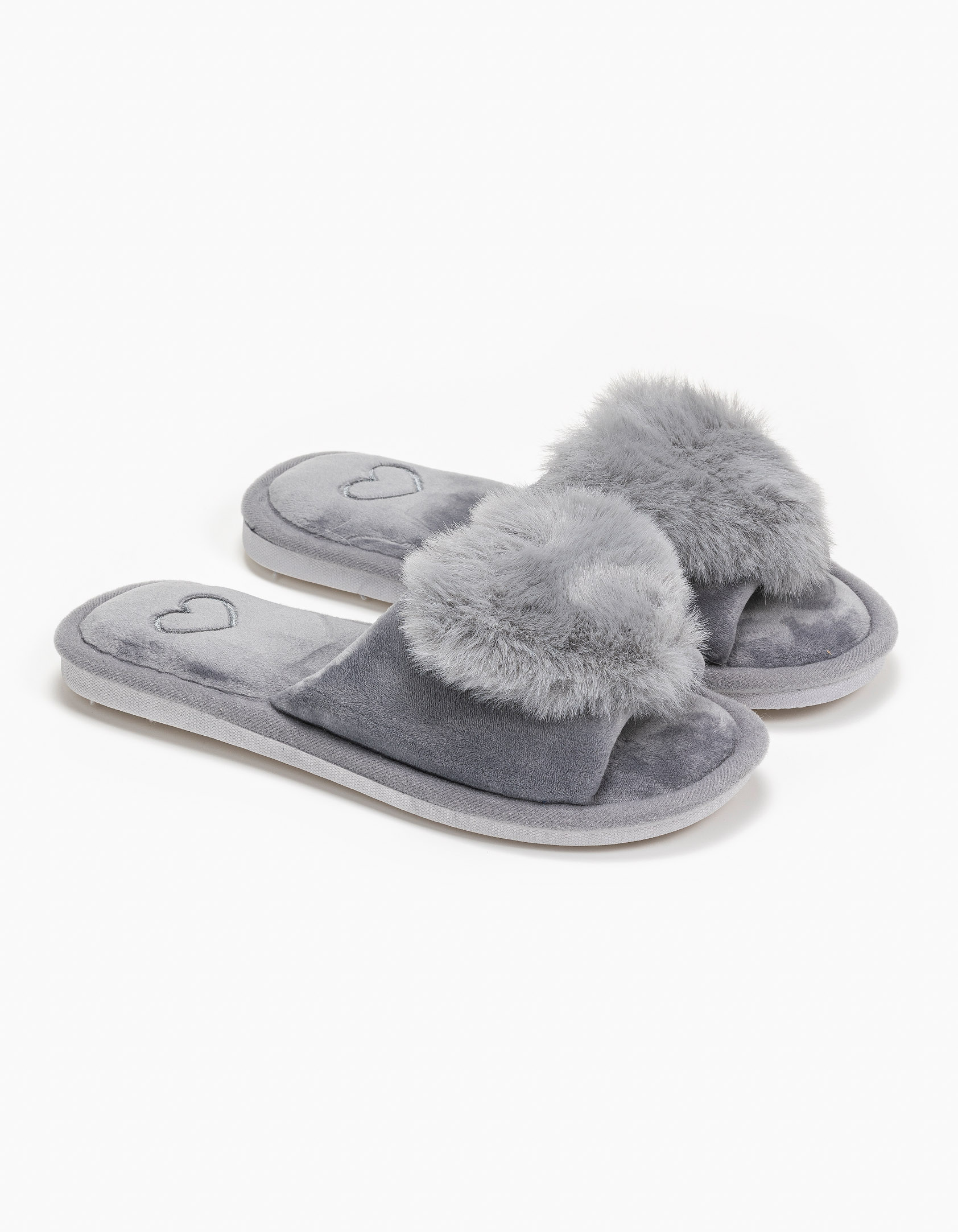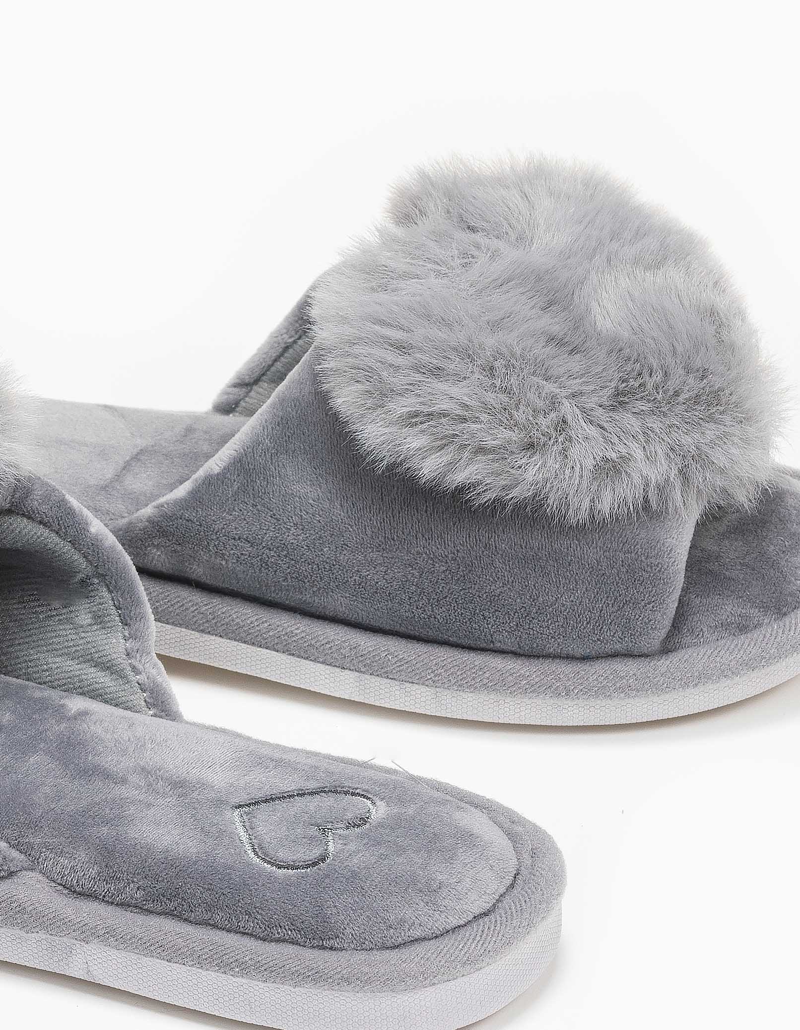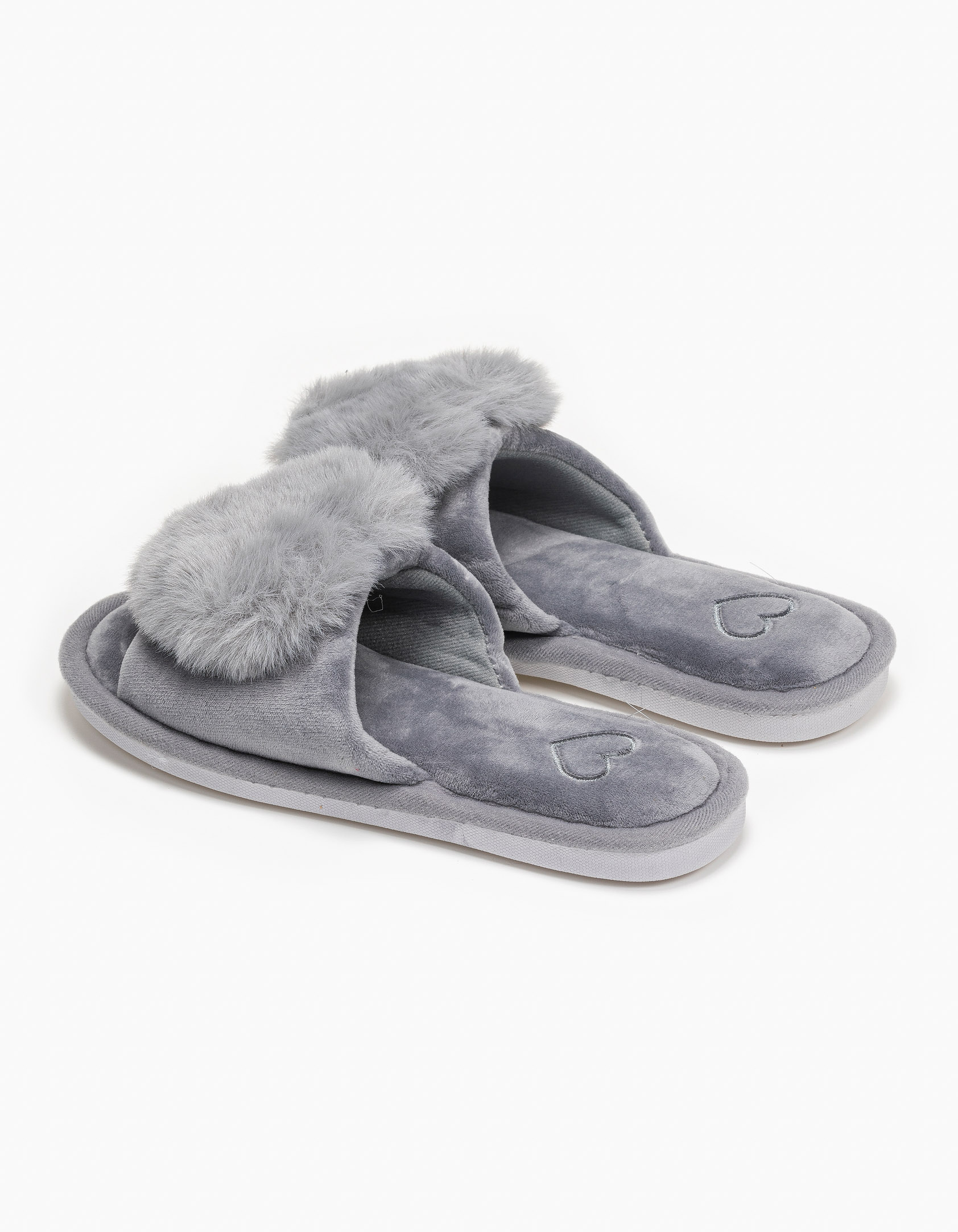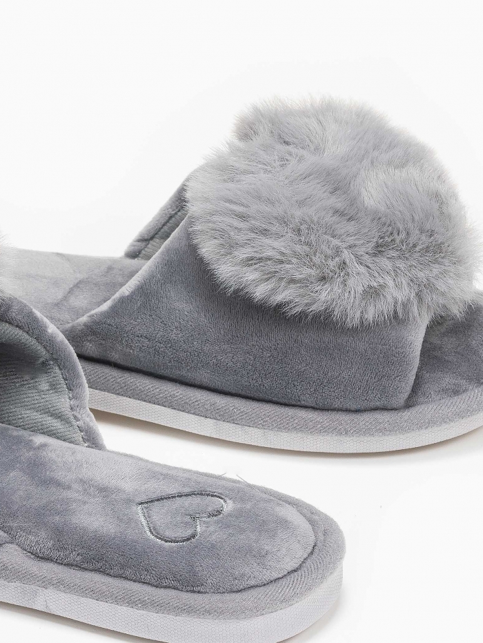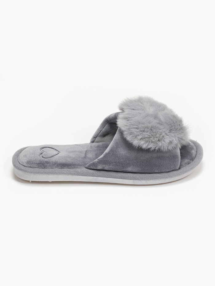 Παντόφλες φάσα με καρδιά - Γκρι