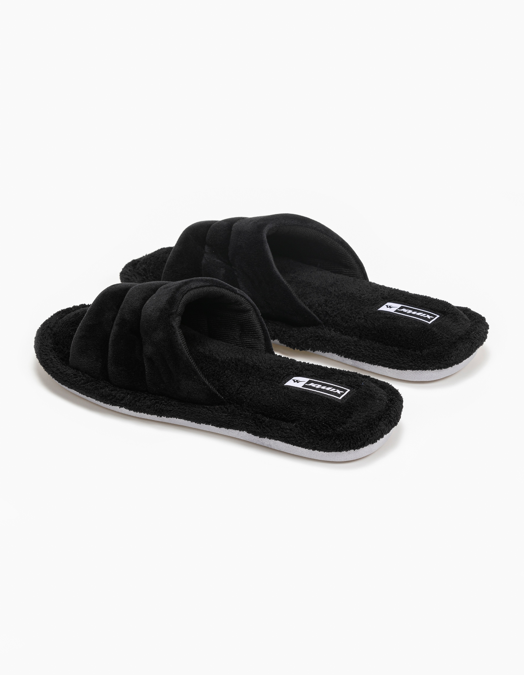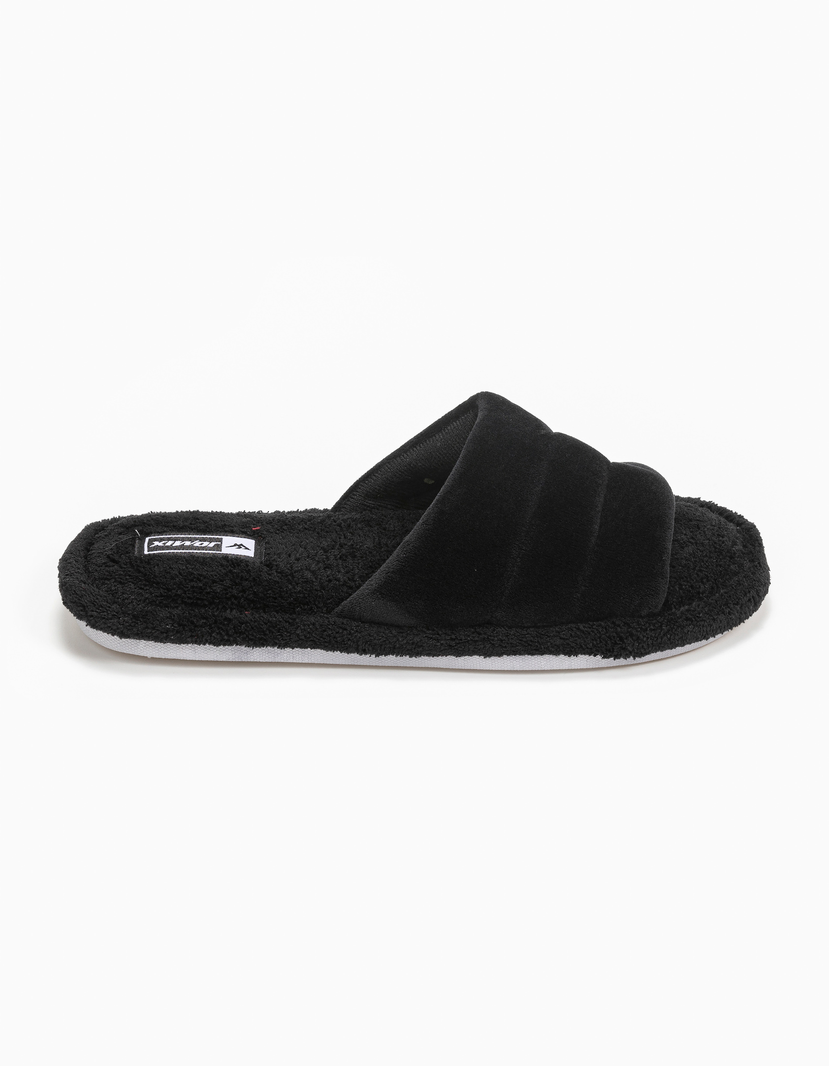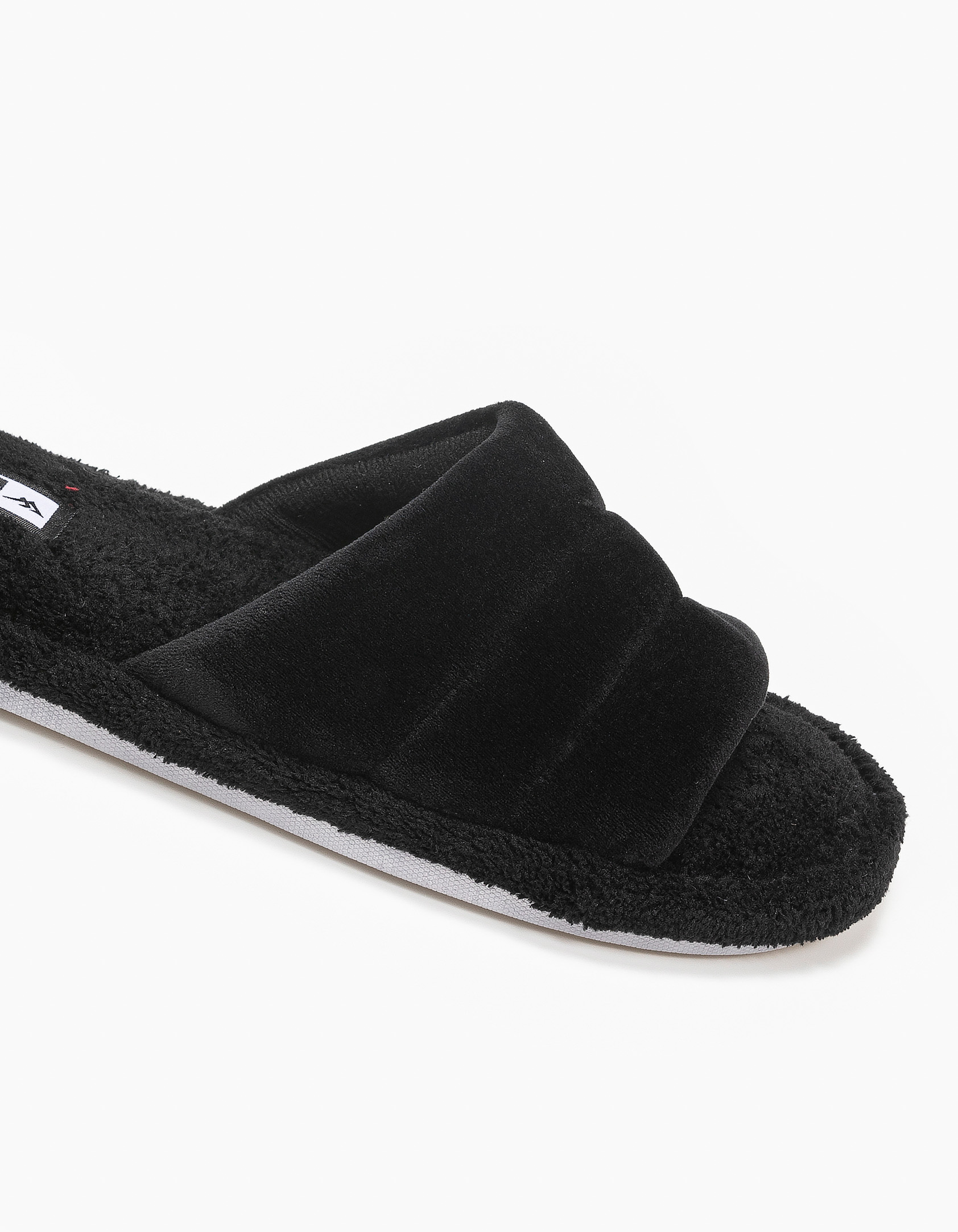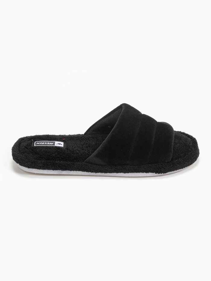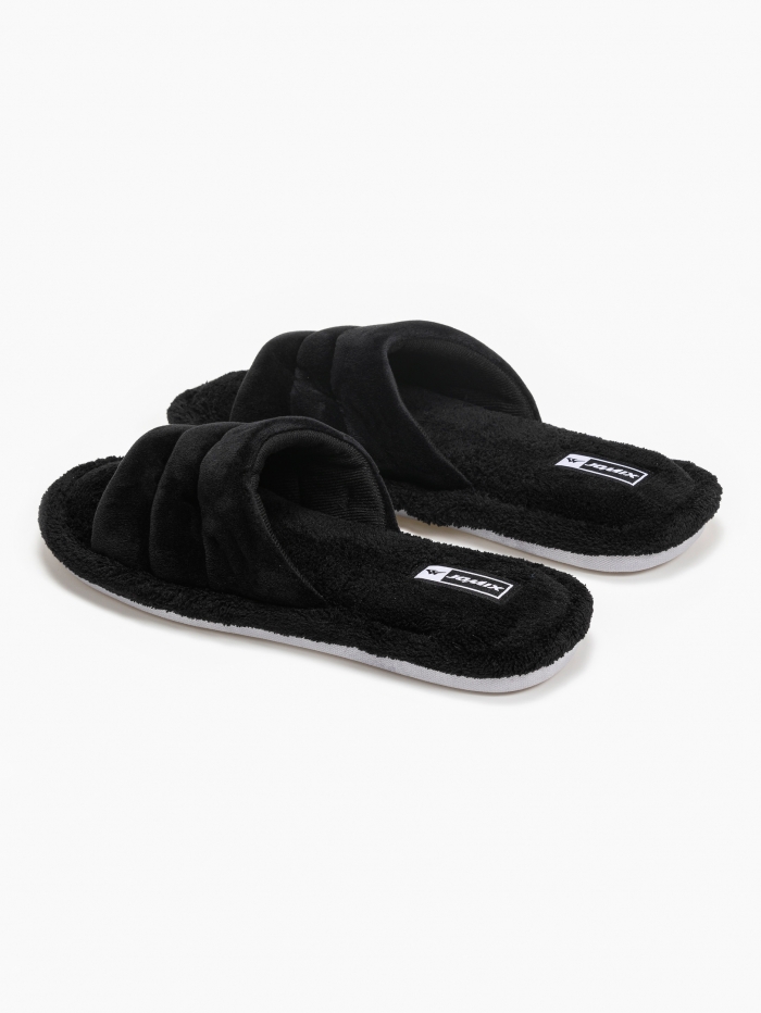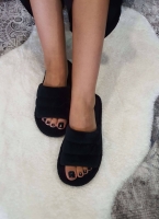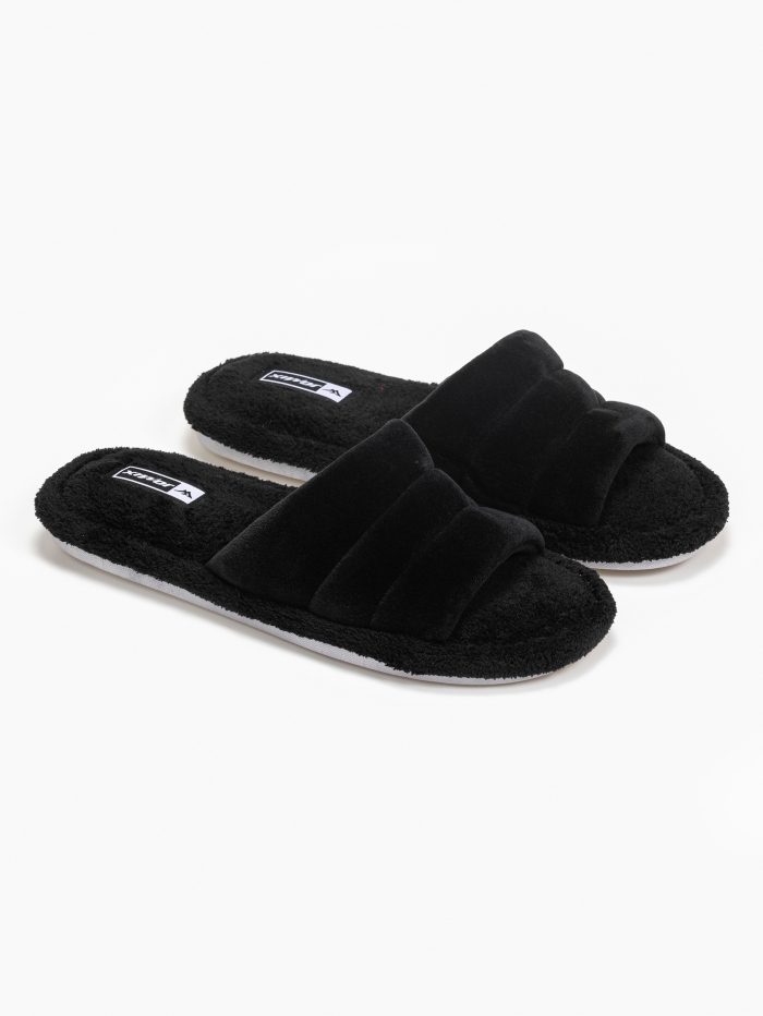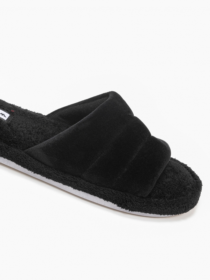 Παντόφλες γούνινες με φαρδιά φάσα - Μαύρο
