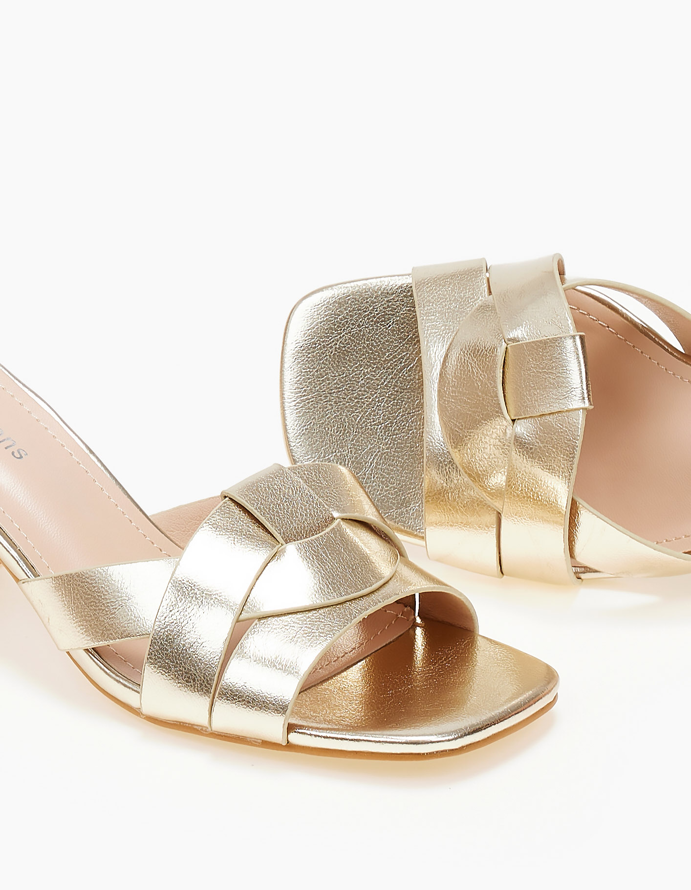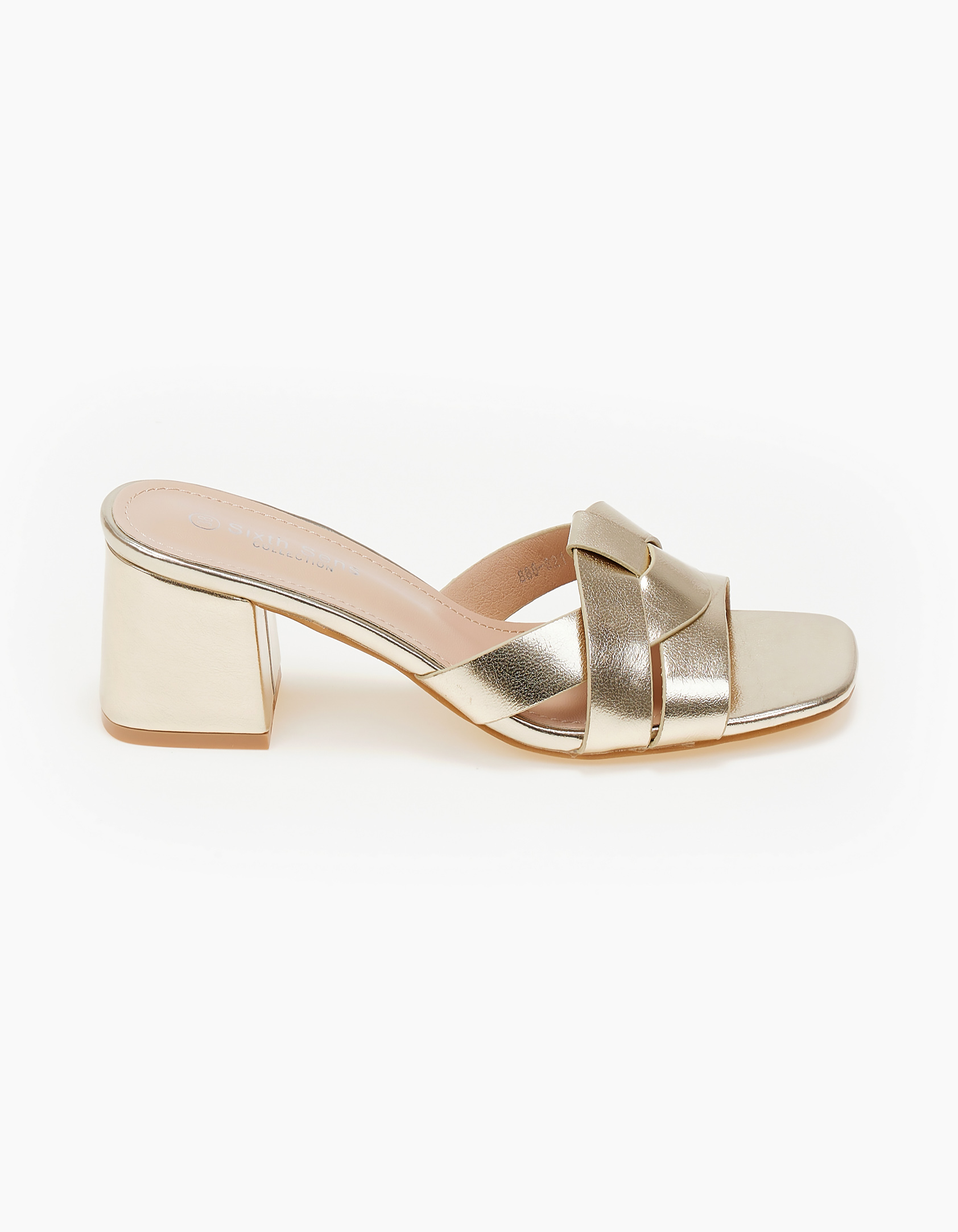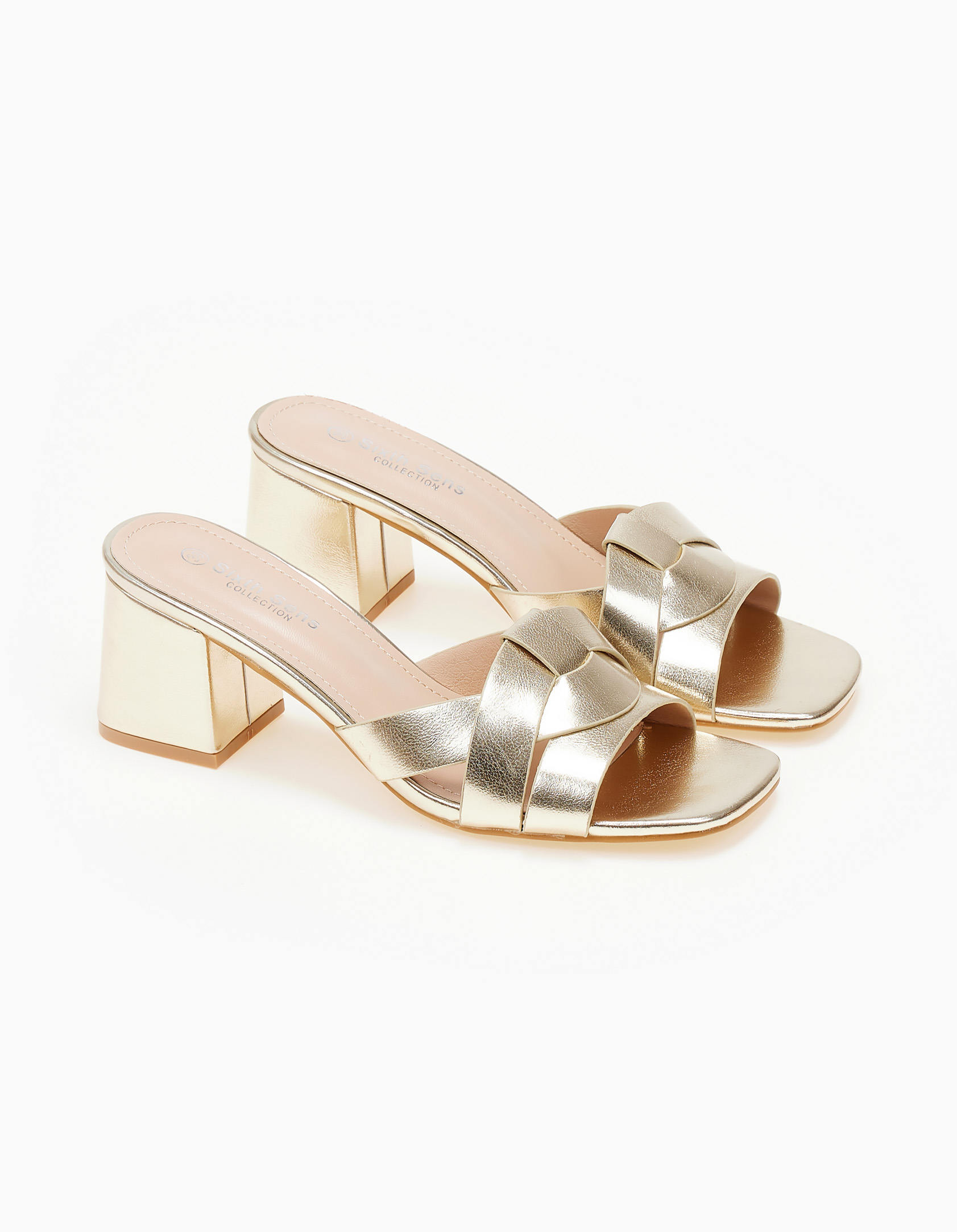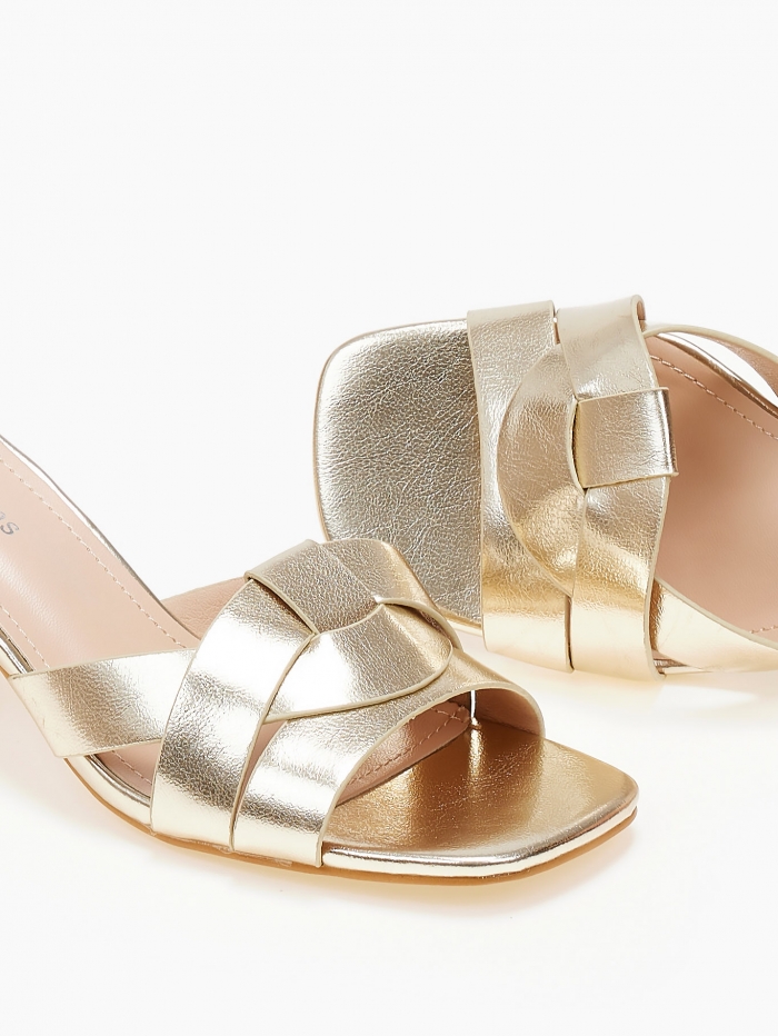 Mules σε καρέ γραμμή με χοντρό τακούνι - Χρυσό