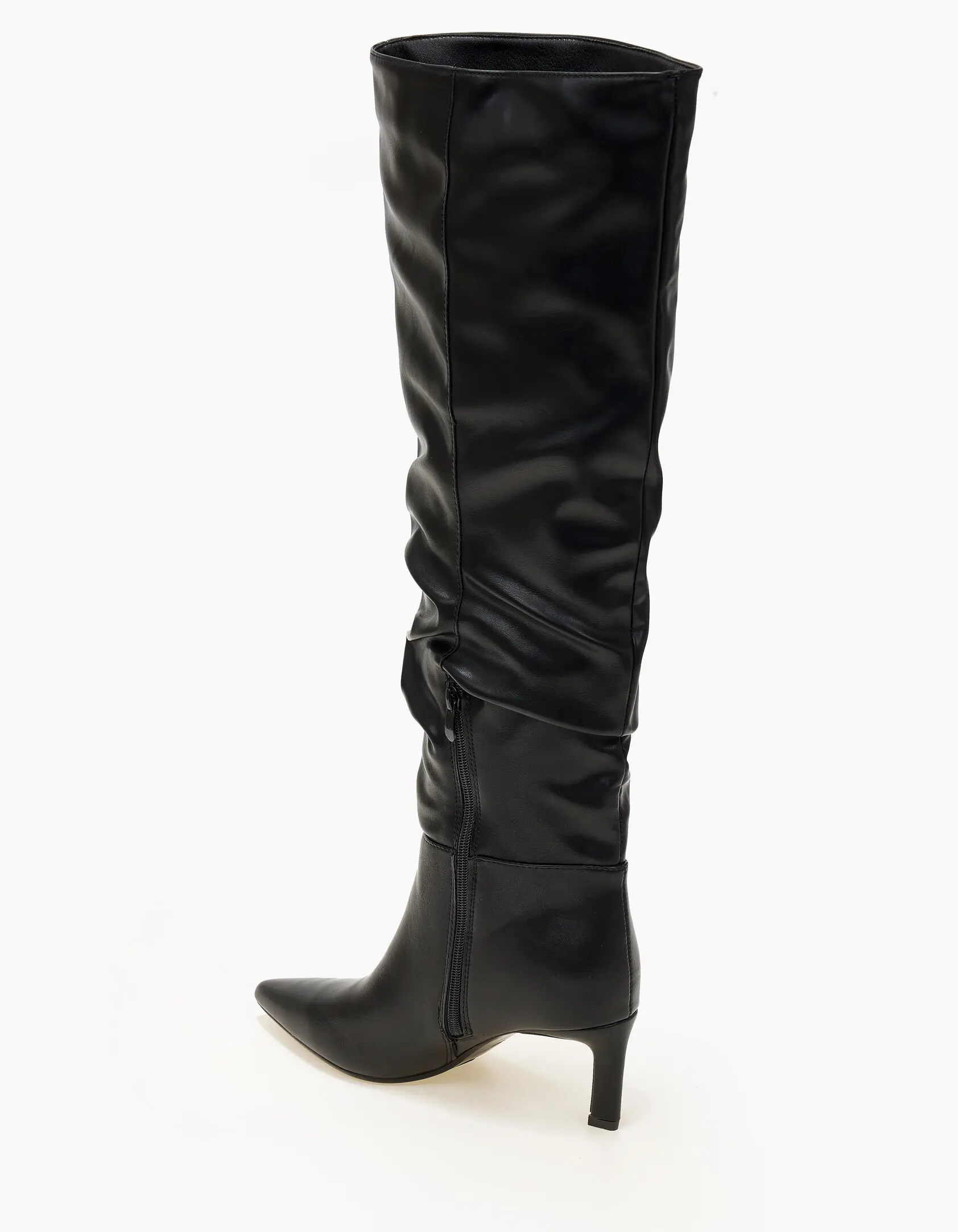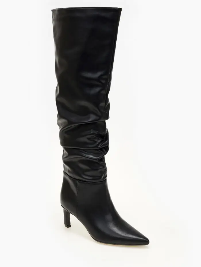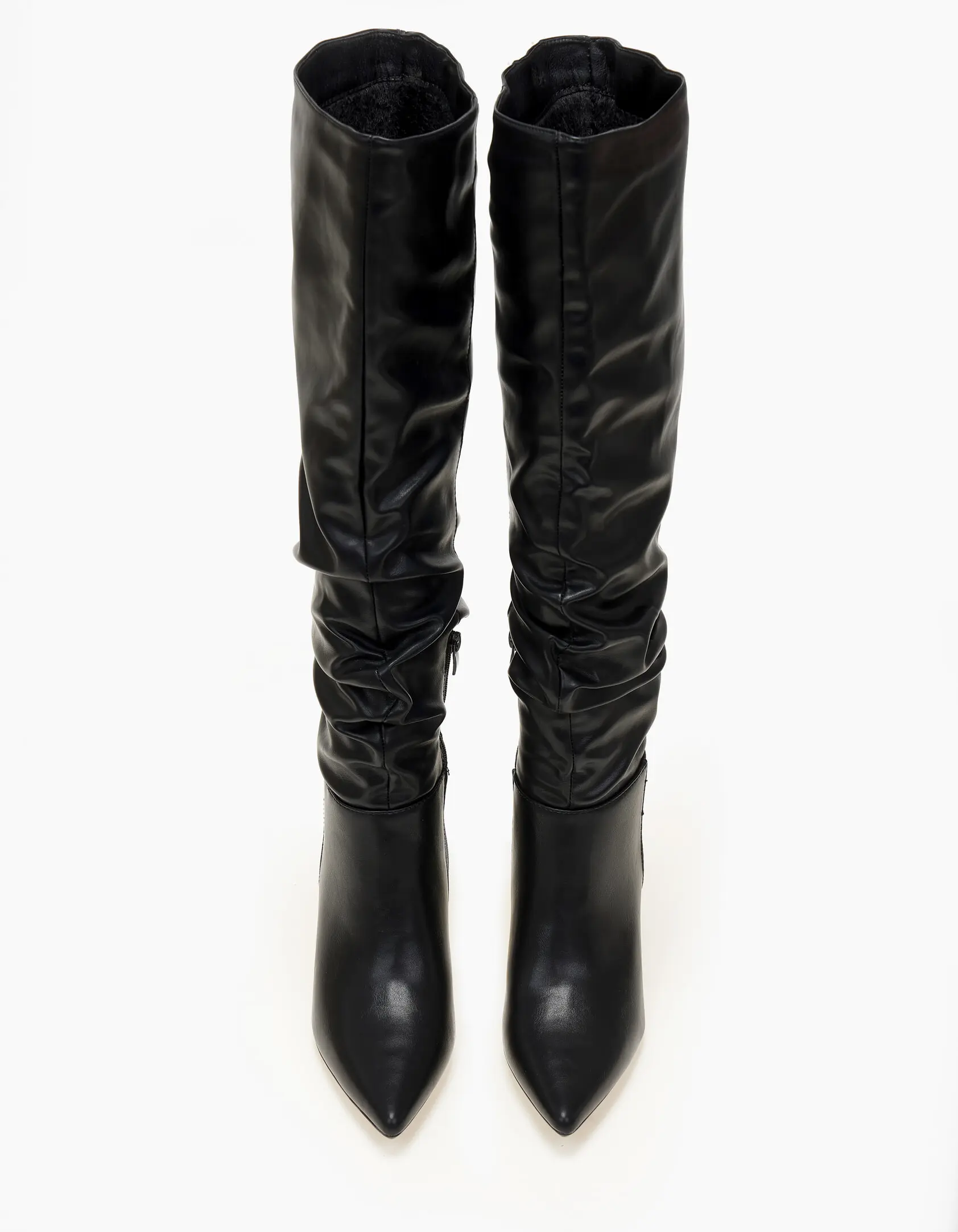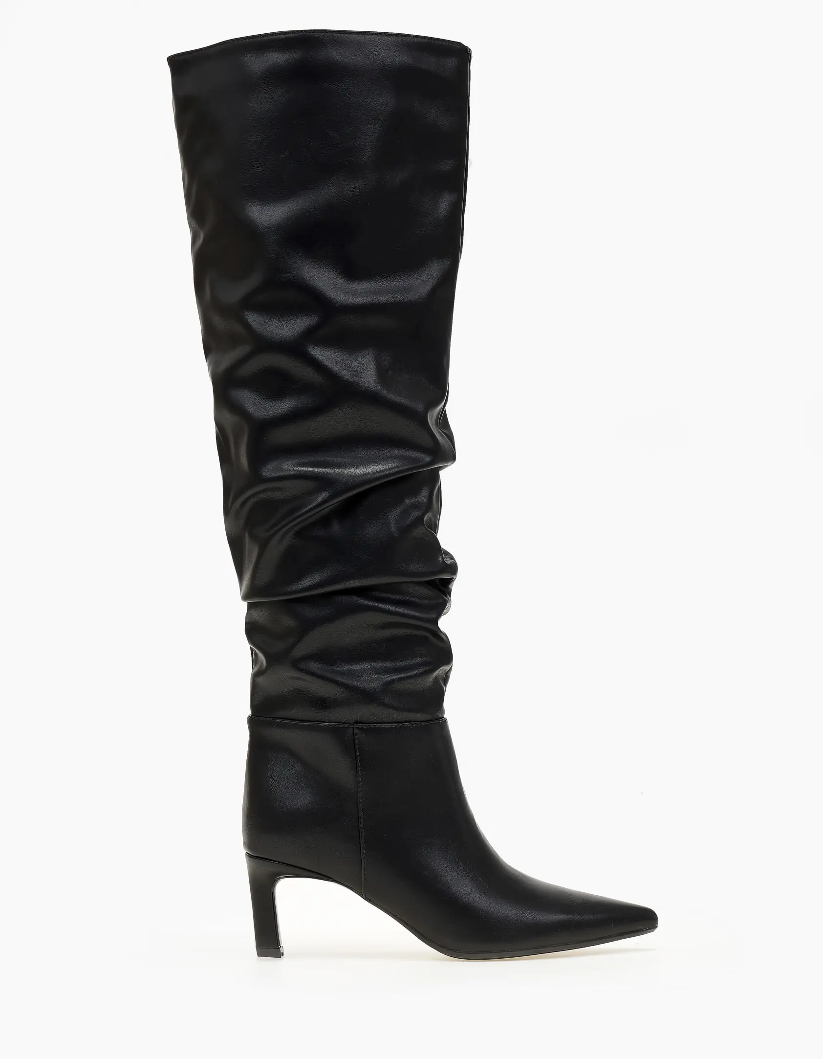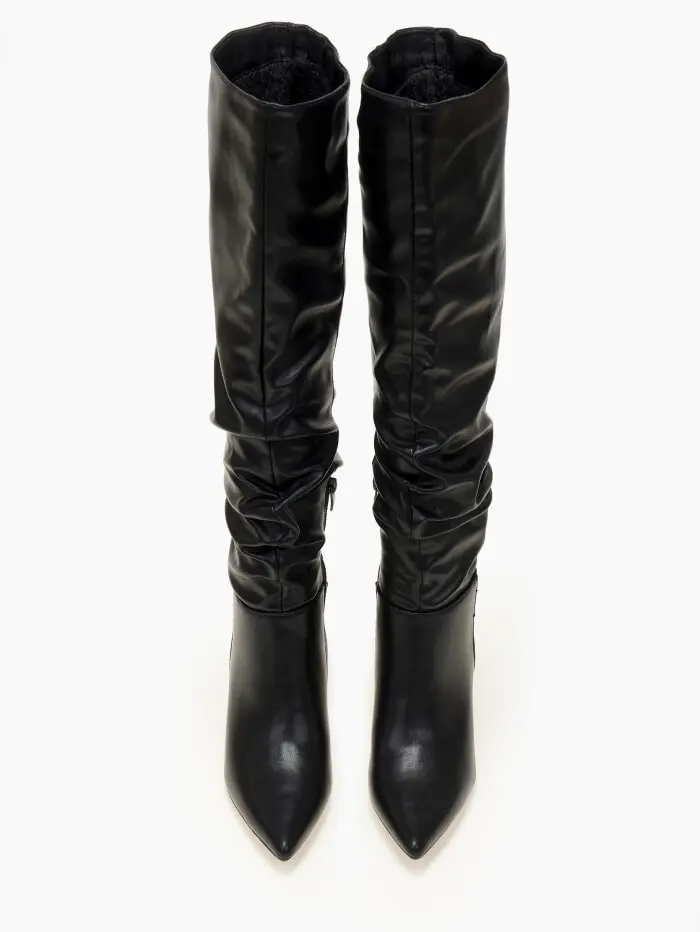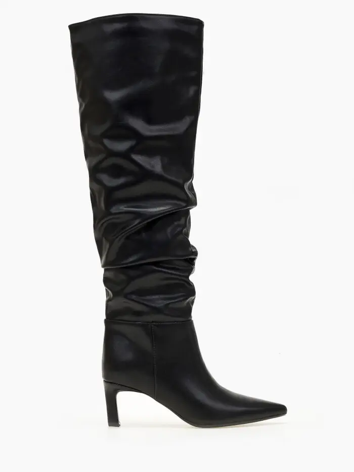 Over the knee μυτερές μπότες με χαμηλό λεπτό τακούνι - Μαύρο