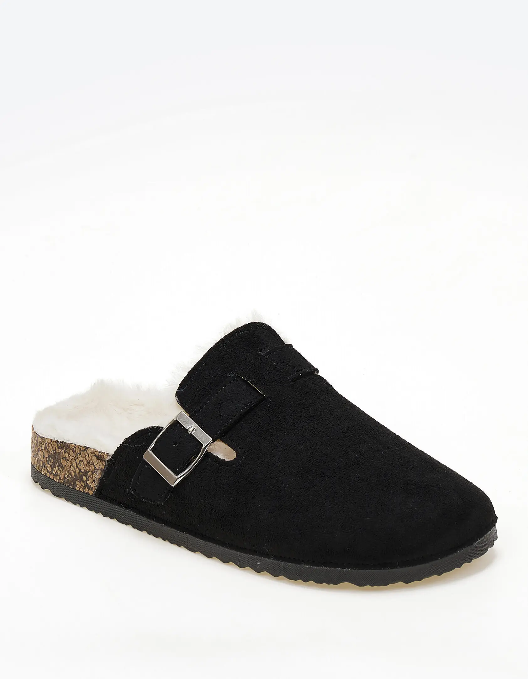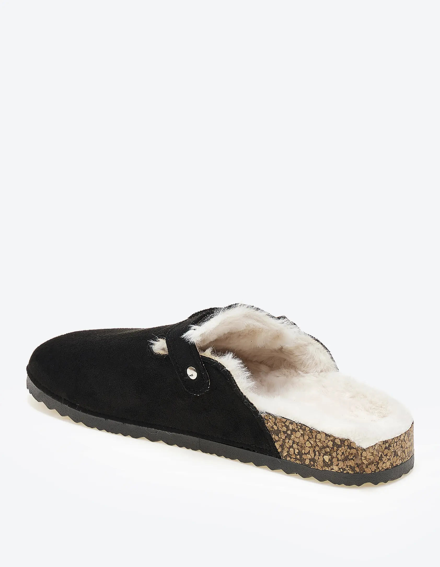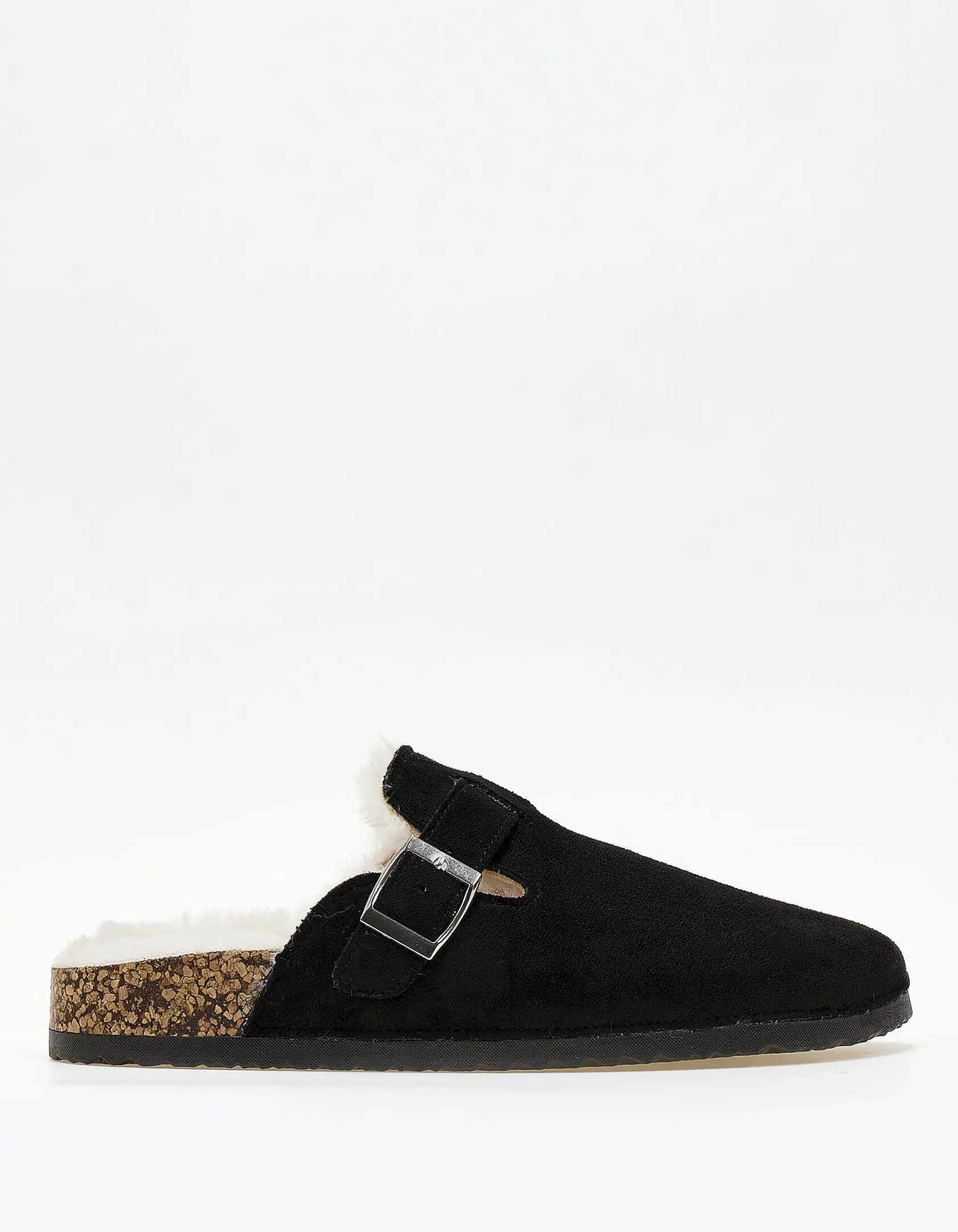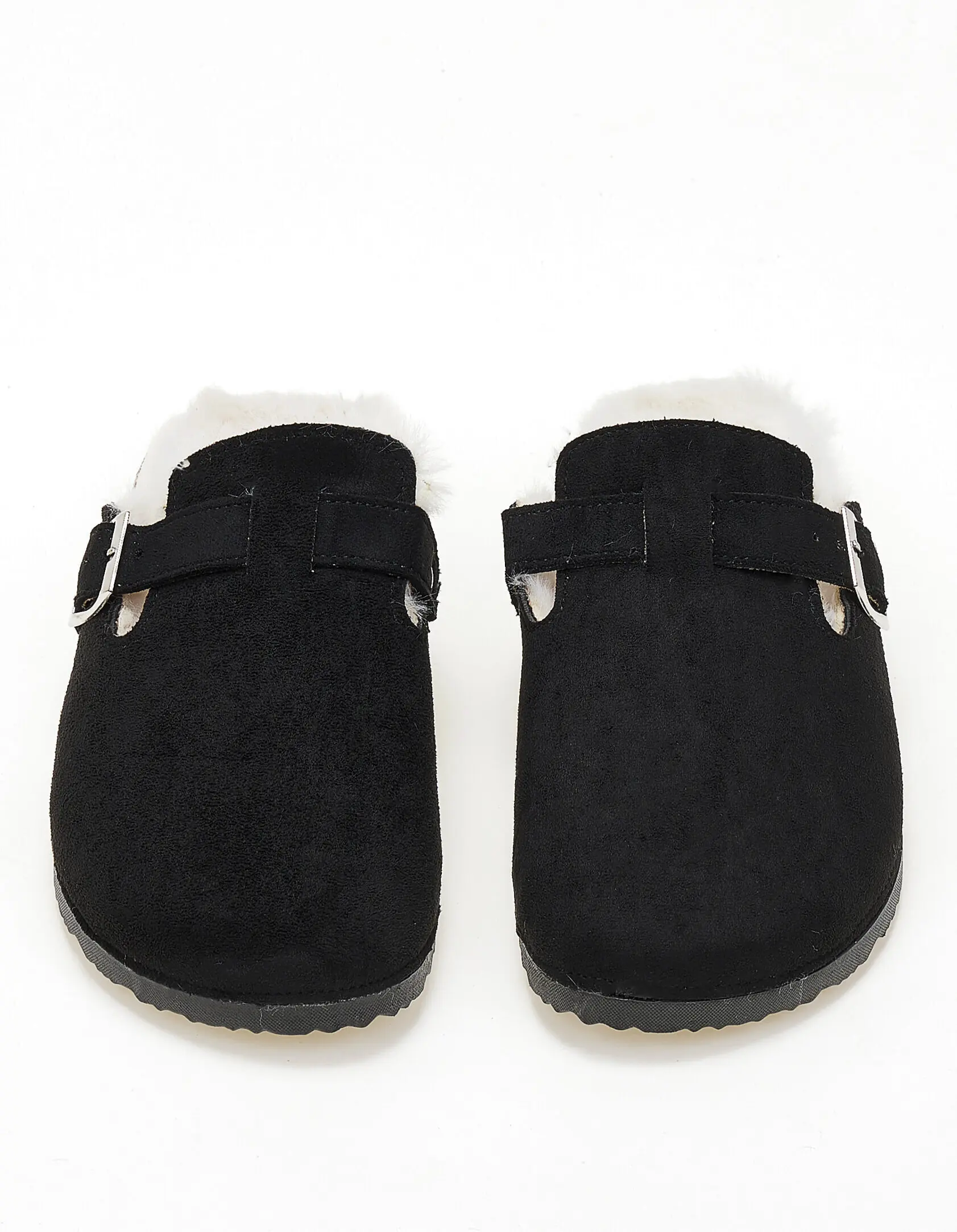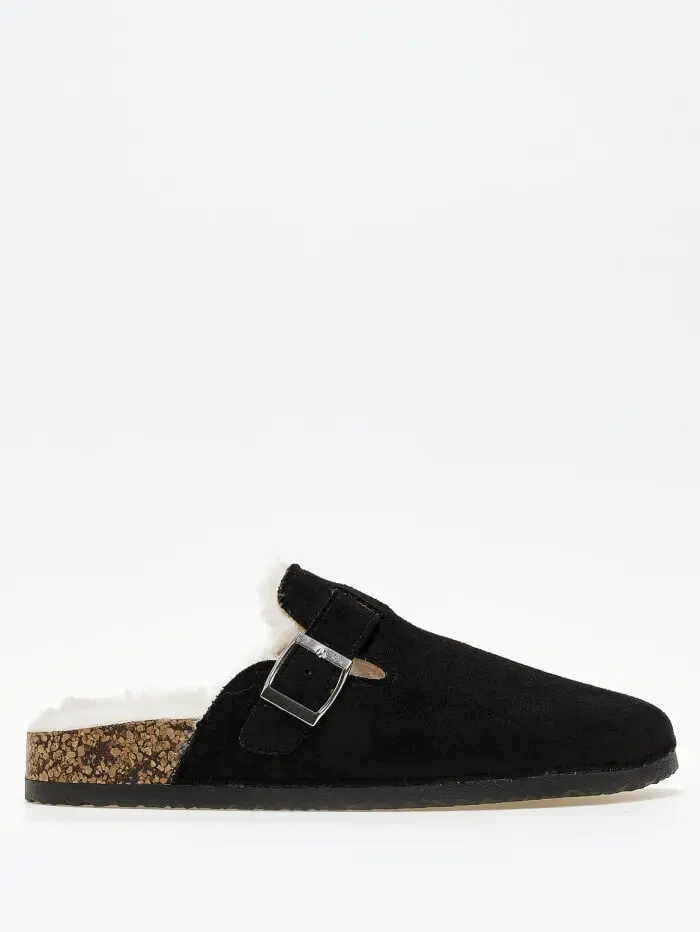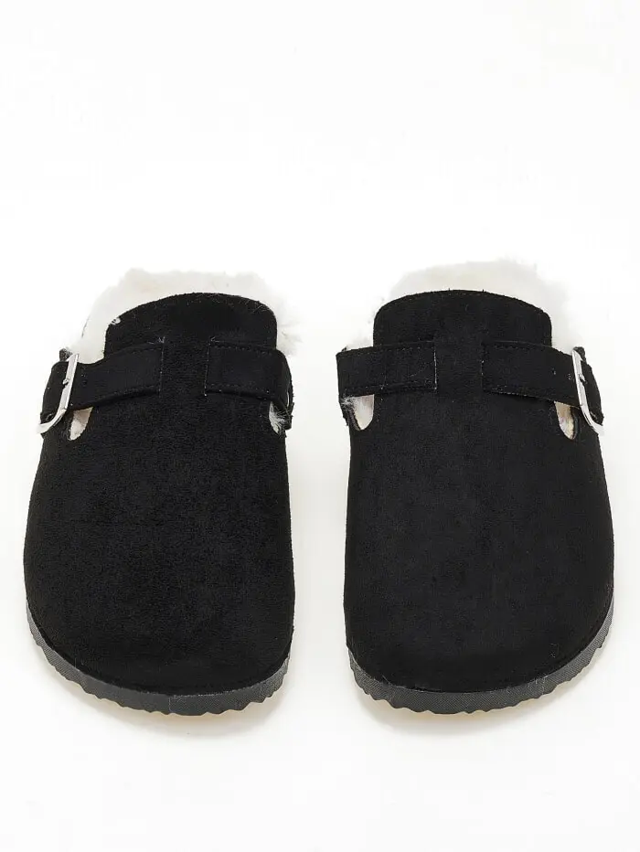 Suede clogs με εσωτερική γούνα - Μαύρο